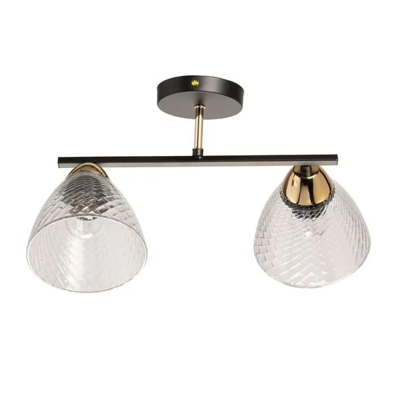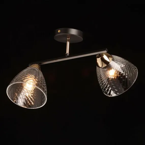 Артикул: 635017402; Бренд: De City; Коллекция: Дэла; Стиль: Современный; Тип светильника: Потолочный светильник; место размещения: Гостиная; Комната; Коттедж; Квартира; Спальня; Тип крепления: планка; Площадь освещения, м2: 4; Напряжение питания, V: 220; Количество ламп: 2; Тип ламп: накаливания, Накаливания; Тип цоколя: E27; Мощность ламп, W: 40; Общая мощность, W: 80; Световой поток, Lm: 860; Цветовая температура, K: 2700; Материал каркаса: металл, Металл; Материал плафона: стекло, Стекло; Цвет каркаса: черный, Черный, Чёрный, чёрный; Цвет плафона: прозрачный, Прозрачный; Лампы в комплекте: Нет; Диммирование: Возможность подключить - Нет; Встроенный - Нет; Наличие пульта: Нет; Гарантия, мес: 12; Длина, мм: 380; Ширина, мм: 310; высота: 245; Диаметр плафона, мм: 135; Вес, кг: 1; Вес упаковки, кг: 1.4; Длина упаковки, см: 33; Ширина упаковки, см: 22; Высота упаковки, см: 18; Штрихкод: 4657812490213