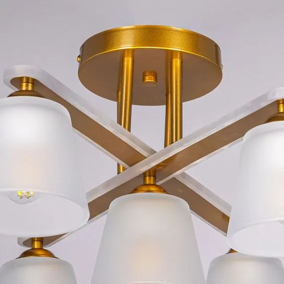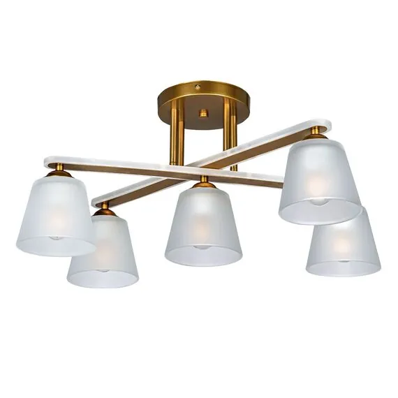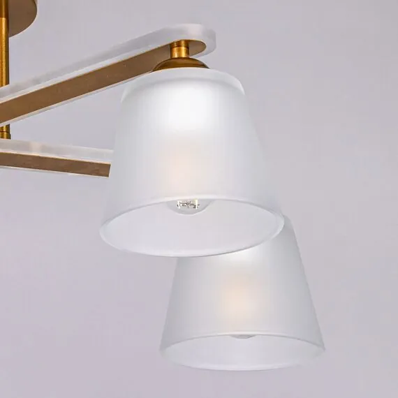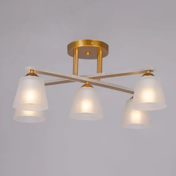 Артикул: 673017805; Бренд: De City; Коллекция: Тетро; Стиль: Ретро; Тип светильника: Люстра потолочная; место размещения: Гостиная; Комната; Коттедж; Квартира; Тип крепления: планка; Степень защиты: IP0; Площадь освещения, м2: 15; Напряжение питания, V: 220; Количество ламп: 5; Тип ламп: накаливания, Накаливания; Тип цоколя: E27; Мощность ламп, W: 60; Общая мощность, W: 300; Световой поток, Lm: 3225; Цветовая температура, K: 2700; Материал каркаса: Акрил; Металл; Материал плафона: стекло, Стекло; Цвет каркаса: золотой, Золотой; Цвет плафона: белый, Белый; Лампы в комплекте: Нет; Диммирование: Возможность подключить - Нет; Встроенный - Нет; Наличие пульта: Нет; Гарантия, мес: 12; Длина, мм: 520; Ширина, мм: 370; высота: 270; Высота потолочной чаши, мм: 25; Диаметр потолочной чаши, мм: 150; Высота плафона, мм: 100; Диаметр плафона, мм: 120; Вес, кг: 2.6; Вес упаковки, кг: 3.1; Длина упаковки, см: 53; Ширина упаковки, см: 21; Высота упаковки, см: 14.5; Штрихкод: 4250369190300