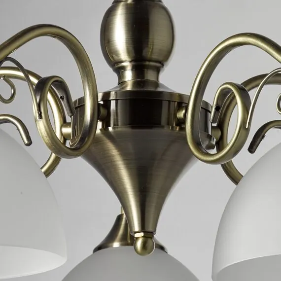 Артикул: 318014705; Бренд: De City; Коллекция: Олимп; Стиль: Античный; Тип светильника: Люстра подвесная; Форма: Классическая; Тип крепления: Подвесные - Универсальный; Степень защиты: 20; Площадь освещения, м2: 15; Напряжение питания, V: 220В; Количество ламп: 5; Тип ламп: накаливания, Накаливания; Тип цоколя: E27; Мощность ламп, W: 60; Общая мощность, W: 300; Световой поток, Lm: 3225; Цветовая температура, K: 2700; Материал каркаса: металл, Металл; Материал плафона: стекло, Стекло; Цвет каркаса: латунь, Латунь; Цвет плафона: белый, Белый; Лампы в комплекте: Нет; Наличие пульта: Нет; Гарантия, мес: 12; Длина, мм: 560; Ширина, мм: 560; высота: 600; Диаметр, мм: 560; Высота потолочной чаши, мм: 45; Диаметр потолочной чаши, мм: 100; Вес, кг: 3.1; Вес упаковки, кг: 3.44; Длина упаковки, см: 30; Ширина упаковки, см: 18; Высота упаковки, см: 28.5