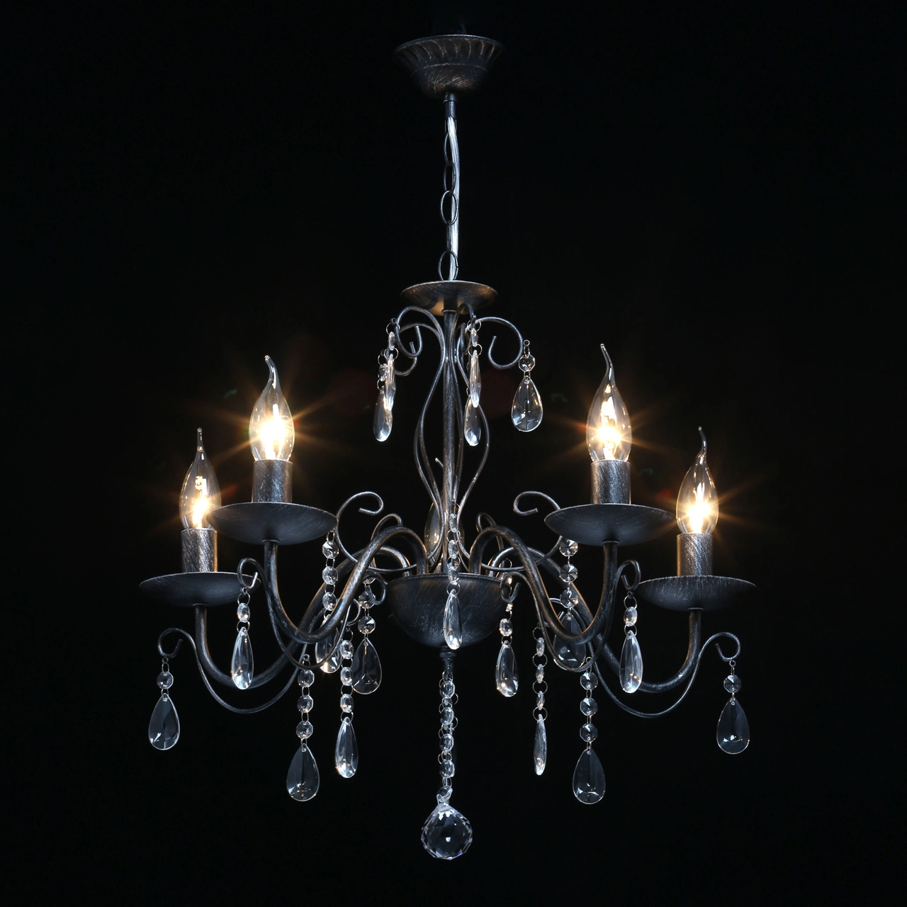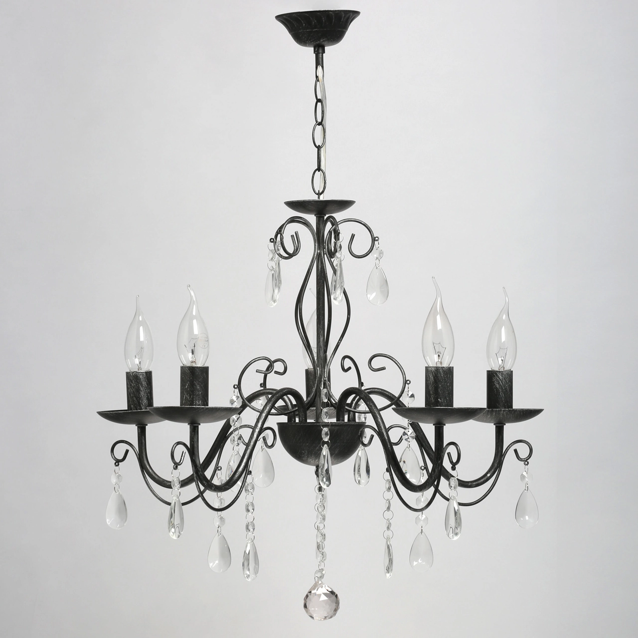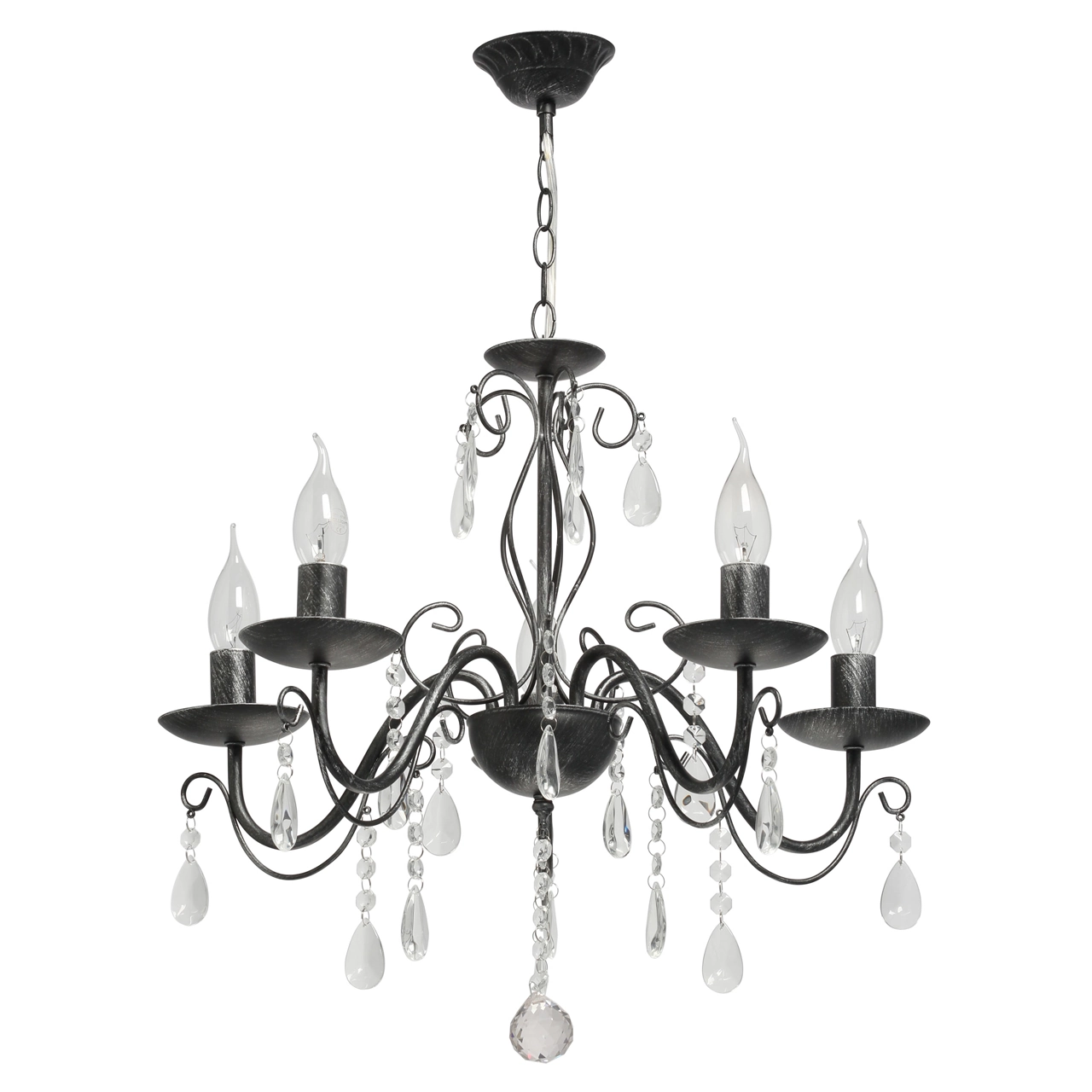 Артикул: 371015205; Бренд: De City; Коллекция: Аврора; Стиль: Classic; Тип светильника: Люстра подвесная; Форма: Классическая; Тип крепления: Подвесные - Универсальный; Степень защиты: 20; Площадь освещения, м2: 15; Напряжение питания, V: 220В; Количество ламп: 5; Тип ламп: накаливания, Накаливания; Тип цоколя: E14; Мощность ламп, W: 60; Общая мощность, W: 300; Световой поток, Lm: 3225; Цветовая температура, K: 2700; Материал каркаса: металл, Металл; Материал плафона: Без плафона; Цвет каркаса: черный, Черный, Чёрный; Лампы в комплекте: Нет; Наличие пульта: Нет; Гарантия, мес: 12; Длина, мм: 520; Ширина, мм: 520; высота: 600; Диаметр, мм: 520; Высота потолочной чаши, мм: 30; Диаметр потолочной чаши, мм: 100; Вес, кг: 1.7; Вес упаковки, кг: 2.2; Длина упаковки, см: 35.5; Ширина упаковки, см: 23; Высота упаковки, см: 21