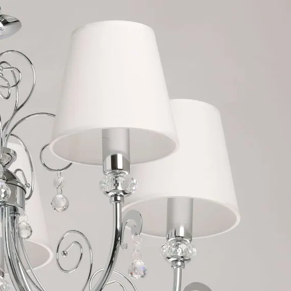 Артикул: 448015105; Бренд: De City; Коллекция: Виталина; Тип светильника: Люстра подвесная; Тип крепления: планка; Степень защиты: 20; Площадь освещения, м2: 10; Напряжение питания, V: 220В; Количество ламп: 5; Тип ламп: накаливания, Накаливания; Тип цоколя: E14; Мощность ламп, W: 40; Общая мощность, W: 200; Световой поток, Lm: 2150; Цветовая температура, K: 2700; Материал каркаса: металл, Металл; Материал плафона: ткань, Ткань; Цвет каркаса: хром, Хром; Цвет плафона: белый, Белый; Лампы в комплекте: Нет; Наличие пульта: Нет; Гарантия, мес: 12; Длина, мм: 600; Ширина, мм: 600; высота: 750; Диаметр, мм: 600; Вес, кг: 2; Вес упаковки, кг: 2.5; Длина упаковки, см: 33; Ширина упаковки, см: 33; Высота упаковки, см: 19