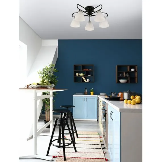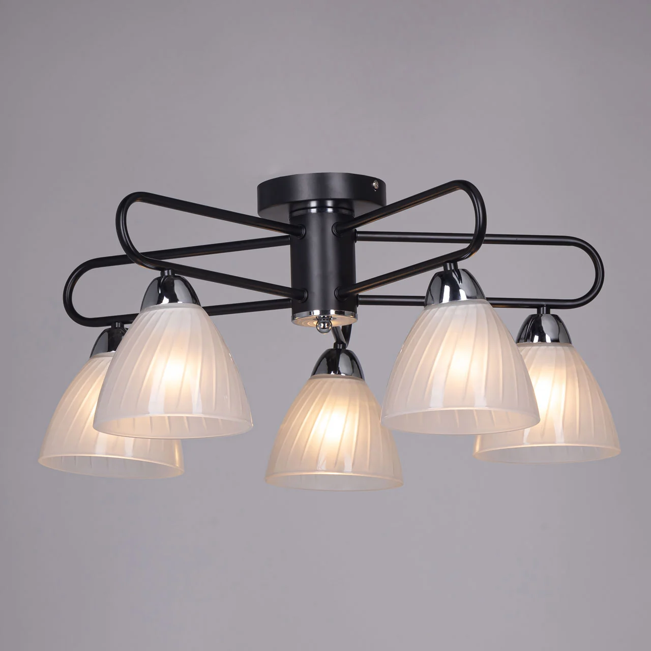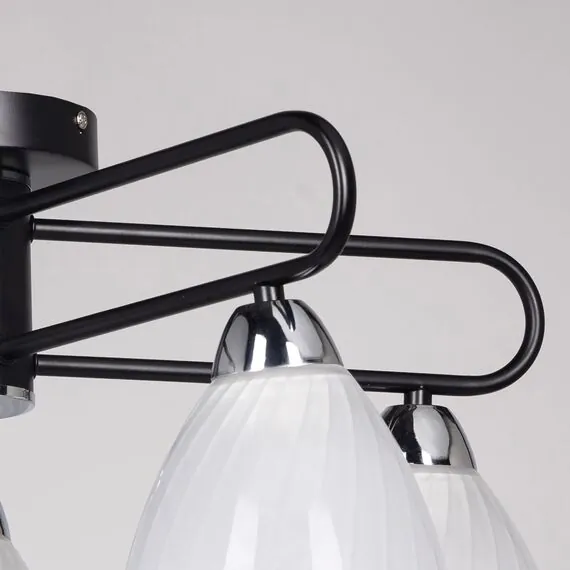 Артикул: 635011505; Бренд: De City; Коллекция: Дэла; Стиль: Современный; Тип светильника: Люстра потолочная; Тип крепления: Потолочные - Планка; Степень защиты: 20; Общая мощность, W: 300; Площадь освещения, м2: 15; Напряжение питания, V: 220В; Количество ламп: 5; Тип ламп: накаливания, Накаливания; Тип цоколя: E27; Мощность ламп, W: 60; Световой поток, Lm: 3225; Цветовая температура, K: 2700; Материал каркаса: металл, Металл; Материал плафона: стекло, Стекло; Цвет каркаса: черный, Черный, Чёрный; Цвет плафона: белый, Белый; Лампы в комплекте: Нет; Наличие пульта: Нет; Гарантия, мес: 12; Длина, мм: 560; Ширина, мм: 560; высота: 260; Диаметр, мм: 560; Вес, кг: 2.6; Вес упаковки, кг: 3.26; Длина упаковки, см: 30.5; Ширина упаковки, см: 26.5; Высота упаковки, см: 16.5