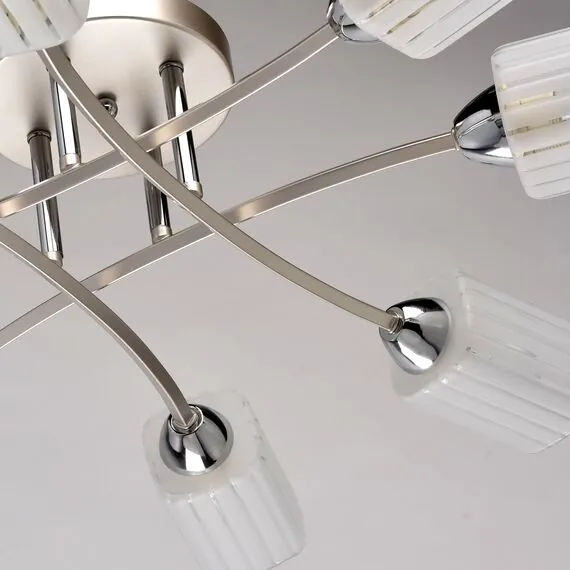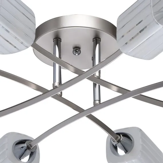 Артикул: 638012308; Бренд: De Markt; Коллекция: Олимпия; Стиль: Scandinavian; Тип светильника: Люстра потолочная; место размещения: Детская; Гостиная; Кухня; Квартира; Прихожая; Форма: Классическая; Тип крепления: планка; Степень защиты: IP20; Площадь освещения, м2: 24; Напряжение питания, V: 220; Количество ламп: 8; Тип ламп: накаливания, Накаливания; Тип цоколя: E14; Мощность ламп, W: 60; Общая мощность, W: 480; Световой поток, Lm: 5160; Цветовая температура, K: 2700; Материал каркаса: металл, Металл; Материал плафона: стекло, Стекло; Цвет каркаса: серебристый, Серебристый; Цвет плафона: белый, Белый; Лампы в комплекте: Нет; Диммирование: Возможность подключить - Да; Встроенный - Нет; Наличие пульта: Нет; Гарантия, мес: 12; Длина, мм: 700; Ширина, мм: 700; высота: 180; Высота потолочной чаши, мм: 30; Диаметр потолочной чаши, мм: 160; Высота плафона, мм: 110; Диаметр плафона, мм: 80; Вес, кг: 2.3; Вес упаковки, кг: 2.78; Длина упаковки, см: 44; Ширина упаковки, см: 25.5; Высота упаковки, см: 22; Штрихкод: 4250369157242