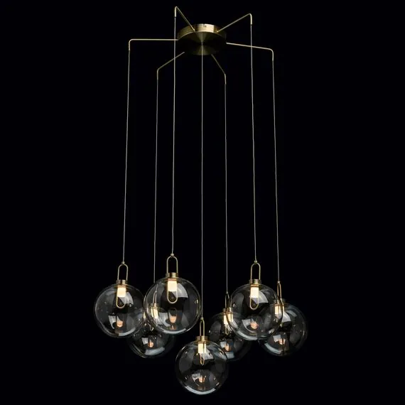 Артикул: 657011307; Бренд: De Markt; Коллекция: Крайс; Стиль: Loft; Тип светильника: Люстра подвесная; место размещения: Кабинет, гостиная, спальня, столовая, холл; Форма: Шар; Тип крепления: Подвесные - Планка; Степень защиты: 20; Площадь освещения, м2: 10; Напряжение питания, V: 220В; Количество ламп: 7; Тип ламп: LED; Тип цоколя: LED; Мощность ламп, W: 5; Общая мощность, W: 35; Световой поток, Lm: 2275; Цветовая температура, K: 3000; Материал каркаса: алюминий, Алюминий; Материал плафона: Акрил; Стекло; Цвет каркаса: бронзовый, Бронзовый; Цвет плафона: прозрачный, Прозрачный; Лампы в комплекте: Да; Наличие пульта: Нет; Гарантия, мес: 12; Длина, мм: 800; Ширина, мм: 800; высота: 1500; Диаметр, мм: 800; Высота потолочной чаши, мм: 35; Диаметр потолочной чаши, мм: 200; Вес, кг: 5.5; Вес упаковки, кг: 8.2; Длина упаковки, см: 72; Ширина упаковки, см: 28; Высота упаковки, см: 80