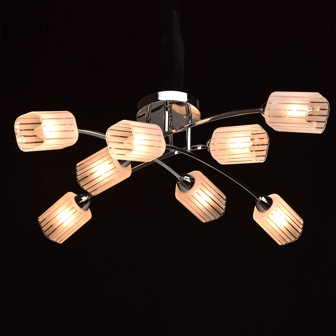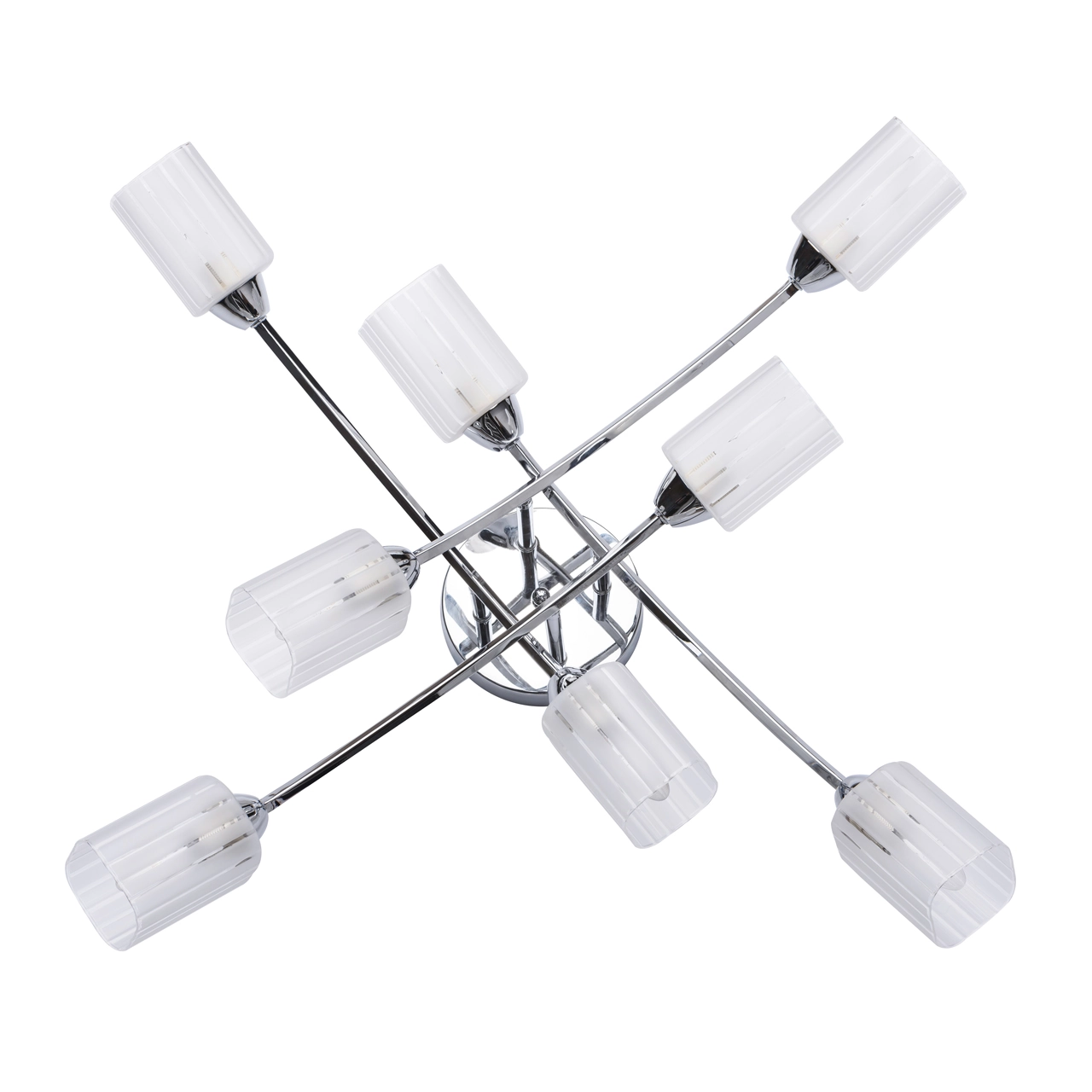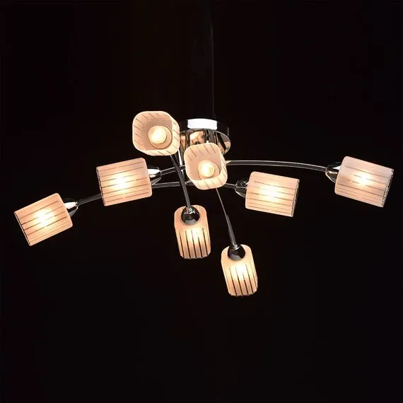 Артикул: 638011808; Бренд: De Markt; Коллекция: Олимпия; Стиль: Scandinavian; Тип светильника: Люстра потолочная; место размещения: Городская квартира – гостиная, спальная комната, кухня.; Форма: Молекулярная; Тип крепления: Потолочные - Планка; Степень защиты: 20; Площадь освещения, м2: 24; Напряжение питания, V: 220В; Количество ламп: 8; Тип ламп: накаливания, Накаливания; Тип цоколя: E14; Мощность ламп, W: 60; Общая мощность, W: 480; Световой поток, Lm: 5160; Цветовая температура, K: 2700; Материал каркаса: металл, Металл; Материал плафона: стекло, Стекло; Цвет каркаса: хром, Хром; Цвет плафона: белый, Белый; Лампы в комплекте: Нет; Диммирование: Есть возможность подключения; Наличие пульта: Нет; Гарантия, мес: 12; Длина, мм: 840; Ширина, мм: 840; высота: 200; Диаметр, мм: 840; Диаметр потолочной чаши, мм: 160; Вес, кг: 2.1; Вес упаковки, кг: 2.7; Длина упаковки, см: 49; Ширина упаковки, см: 14.5; Высота упаковки, см: 27