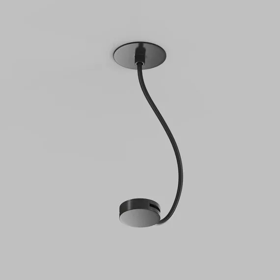 Denkirs TR5514-BK Встраиваемое основание с возможностью подачи питания треку-ремню Belty, серия Base. Не вмещает блок питания. D65мм, монтажный D50мм, коннектор на проводе, L200-1500мм, IP20, черный, алюминий