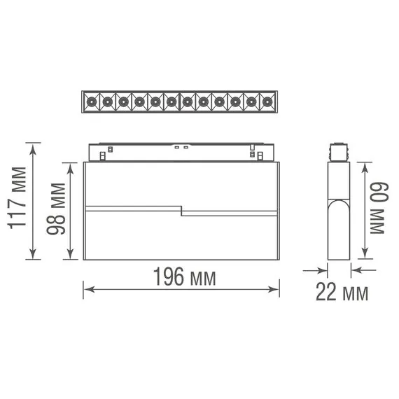 Артикул: DL20292TW12BTuya; Бренд: Donolux; Тип крепления: На шинопровод (трек); Напряжение питания, V: 230; Угол рассеивания, град: 30; Тип пускорегулирующего аппарата: Цифров. ЭПРА; Количество ламп: 12; Тип ламп: LED; Тип цоколя: Прочее; Световой поток, Lm: 767; Цветовая температура, K: 3 000 - 6 000; Индекс цветопередачи: 90-100 (класс 1A); Цвет каркаса: черный, Черный; Лампы в комплекте: Да; ПРА в комплекте: Да; Длина, мм: 195; Ширина, мм: 22; высота: 98