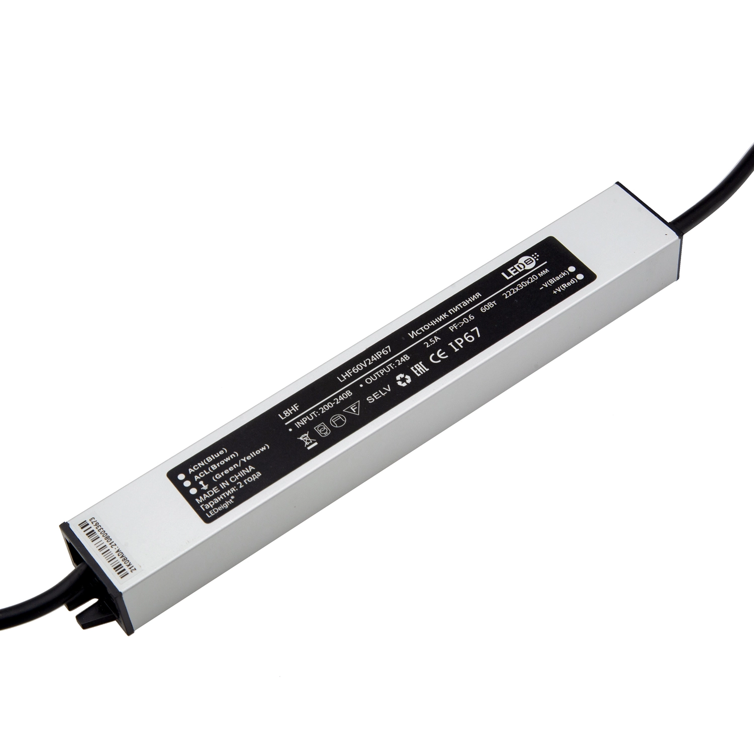 Артикул: DNHF60V24IP67Slim; Бренд: Donolux; товарная группа: LED-драйвер (блок питания для светодиодов); Степень защиты: IP67; Напряжение питания, V: 230; Температурный режим: -20 - 40; Материал: Герметизированный; Цвет: алюминий; Гарантия, мес: 24; Длина, мм: 222; Ширина, мм: 30; высота: 20