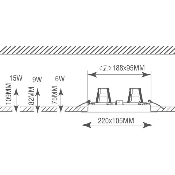 Артикул: DL18615/02WW-SQ White/Black; Бренд: Donolux; Серия: Lumme; Стиль: LED; товарная группа: Встраиваемый светильник; Тип крепления: Встраиваемый (-ая); Степень защиты: IP20; Напряжение питания, V: 230; Тип ламп: Галогенная/LED лампа; Тип цоколя: GU10; Max мощность лампы, W: 50; Цвет: Белый, черный; Цвет каркаса: белый, Белый; Лампы в комплекте: Нет; ПРА в комплекте: Нет; Гарантия, мес: 24; Длина, мм: 220; Ширина, мм: 105; высота: 95; Длина встраиваемой части, мм: 188; Ширина встраиваемой части, мм: 95; Диаметр врезного отверстия, мм: 188*95; Вес, кг: 0,54
