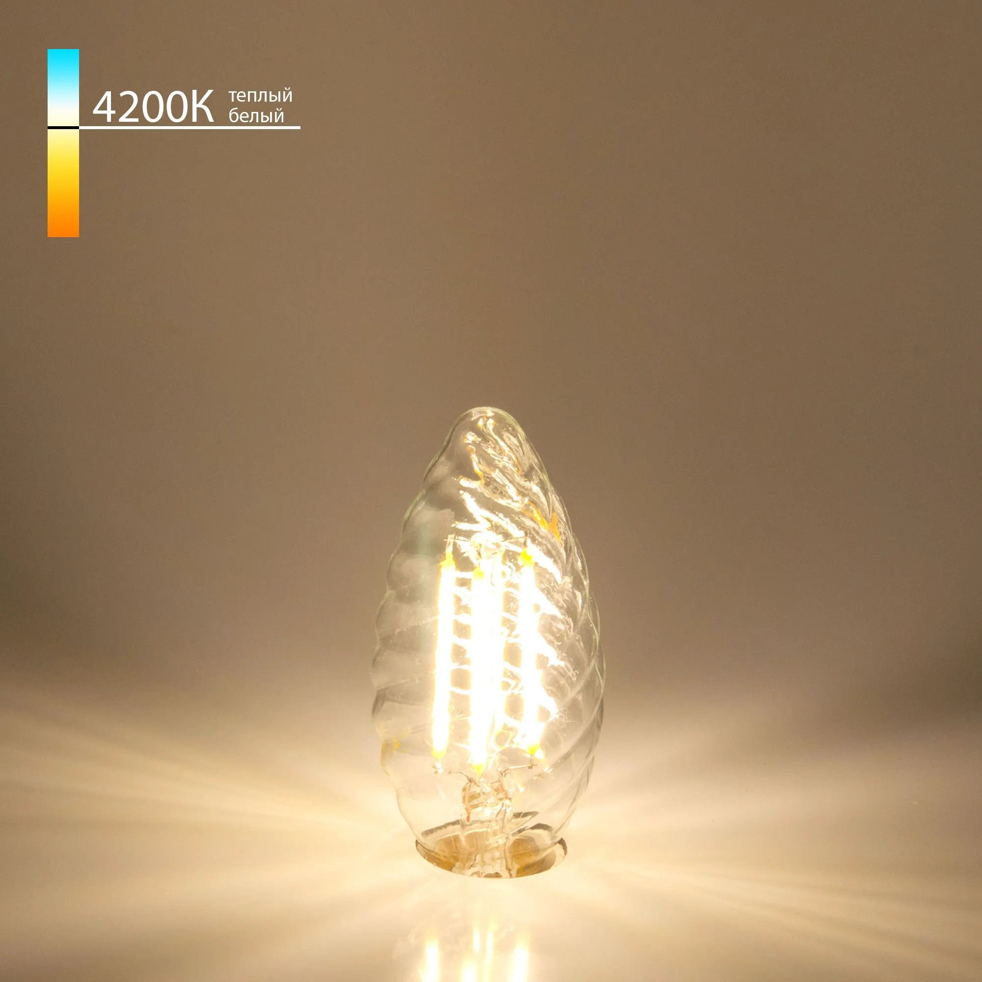 Артикул: BLE1414; Бренд: Elektrostandard; Серия: Свеча витая F; Питание: 170-240 В, 50 Гц; Угол рассеивания, град: 360; Электромагнитная совместимость: Да; Температурный режим: -20 ... +40; Тип цоколя: E14; Общая мощность, W: 7; Световой поток, Lm: 700; Цветовая температура, K: 4200; Индекс цветопередачи: >80; Срок службы светодиодов, ч: 50000; Материал: металл;стекло; Наличие поворотного механизма: 35; Умный дом: совместим с умным реле; Гарантия, мес: 24; Длина, мм: 35; Ширина, мм: 35; высота: 100