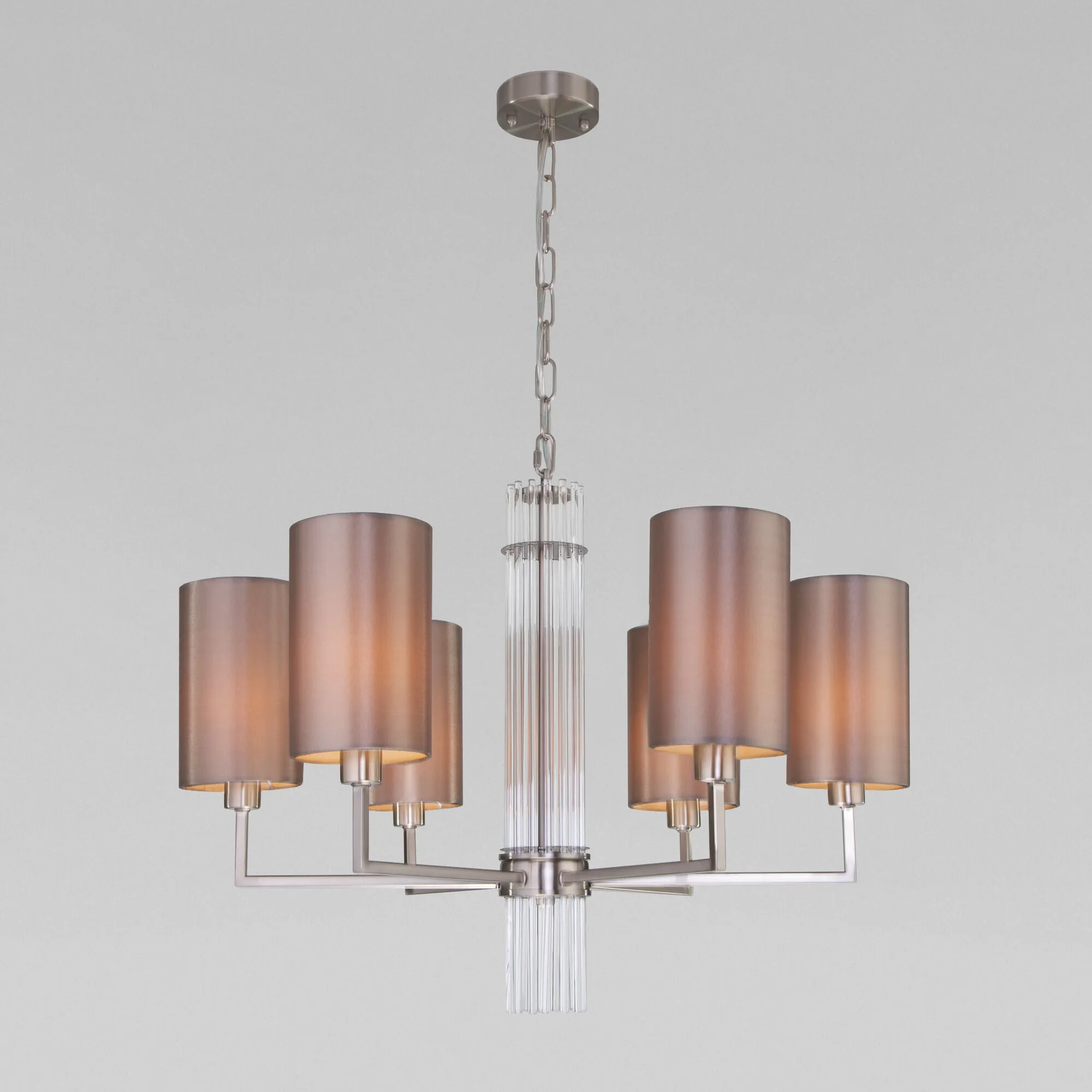 Артикул: 60134/6; Бренд: Eurosvet; Серия: Soffio; Стиль: классика; товарная группа: Подвесной светильник; Тип светильника: сменная лампа; место размещения: гостиная;спальня;кабинет;гостиница; Срок службы, г: 8; Тип крепления: планка; Степень защиты: IP20; Питание: 230 В, 50 Гц; Площадь освещения, м2: 10; Класс электро-безопасности: I; Температурный режим: -10 ... +40; Коэффициент пульсации, %: < 5; Тип ламп: металл; Тип цоколя: E14; Материал: металл;ткань; Материал плафона: ткань; Цвет: коричневый;никель; Цвет каркаса: никель, Никель; Цвет плафона: коричневый, Коричневый; Умный дом: совместим с умным реле;совместим с умным выключателем; Гарантия, мес: 12; Длина, мм: 650; Ширина, мм: 650; min высота: 550; max высота: 850; Диаметр потолочной чаши, мм: 100; Высота встраиваемой части, мм: 40; Вес упаковки, кг: 3.319; Длина упаковки, см: 48.6; Ширина упаковки, см: 26.7; Высота упаковки, см: 31.4; Объем упаковки, м3: 0.04074527; Штрихкод: 4690389182068