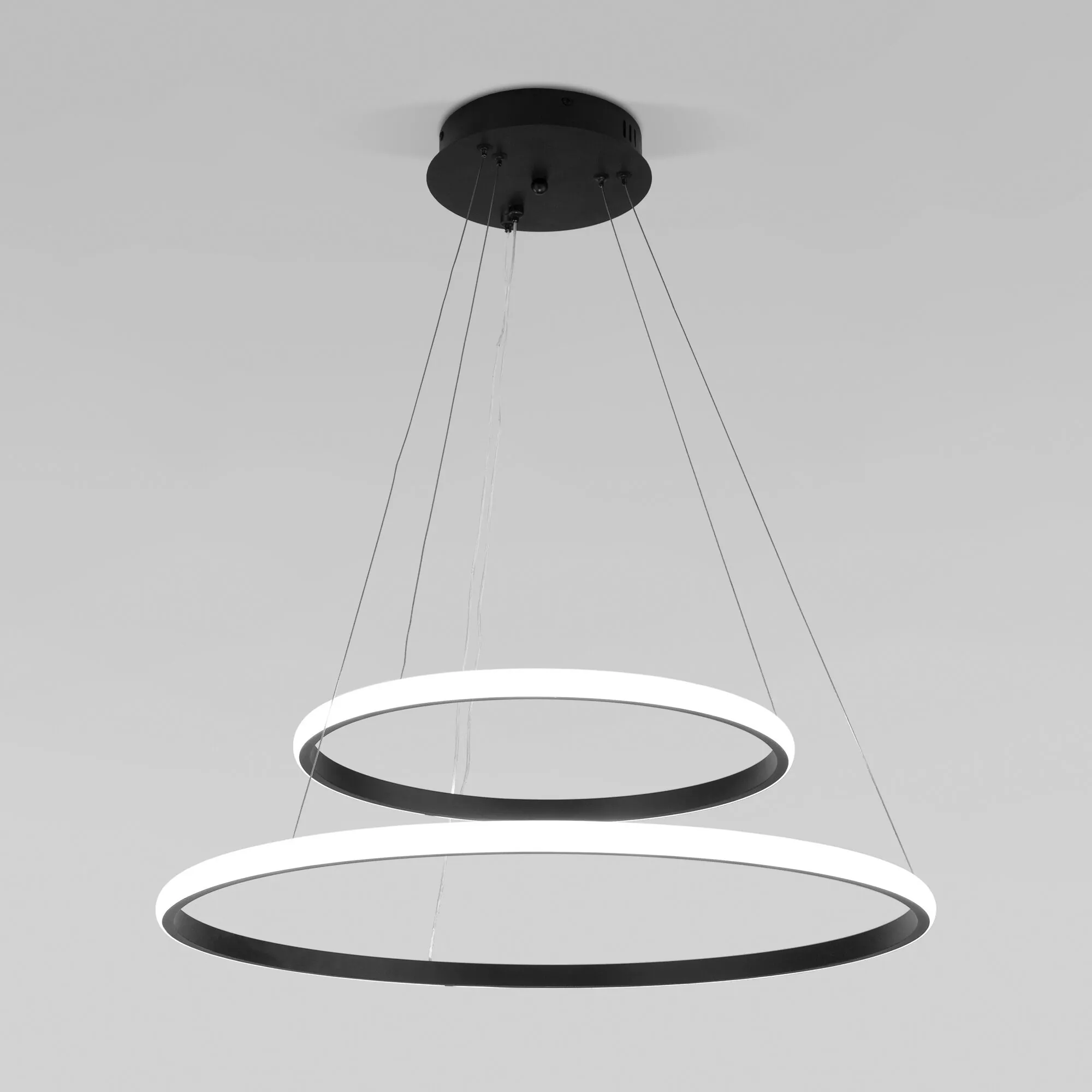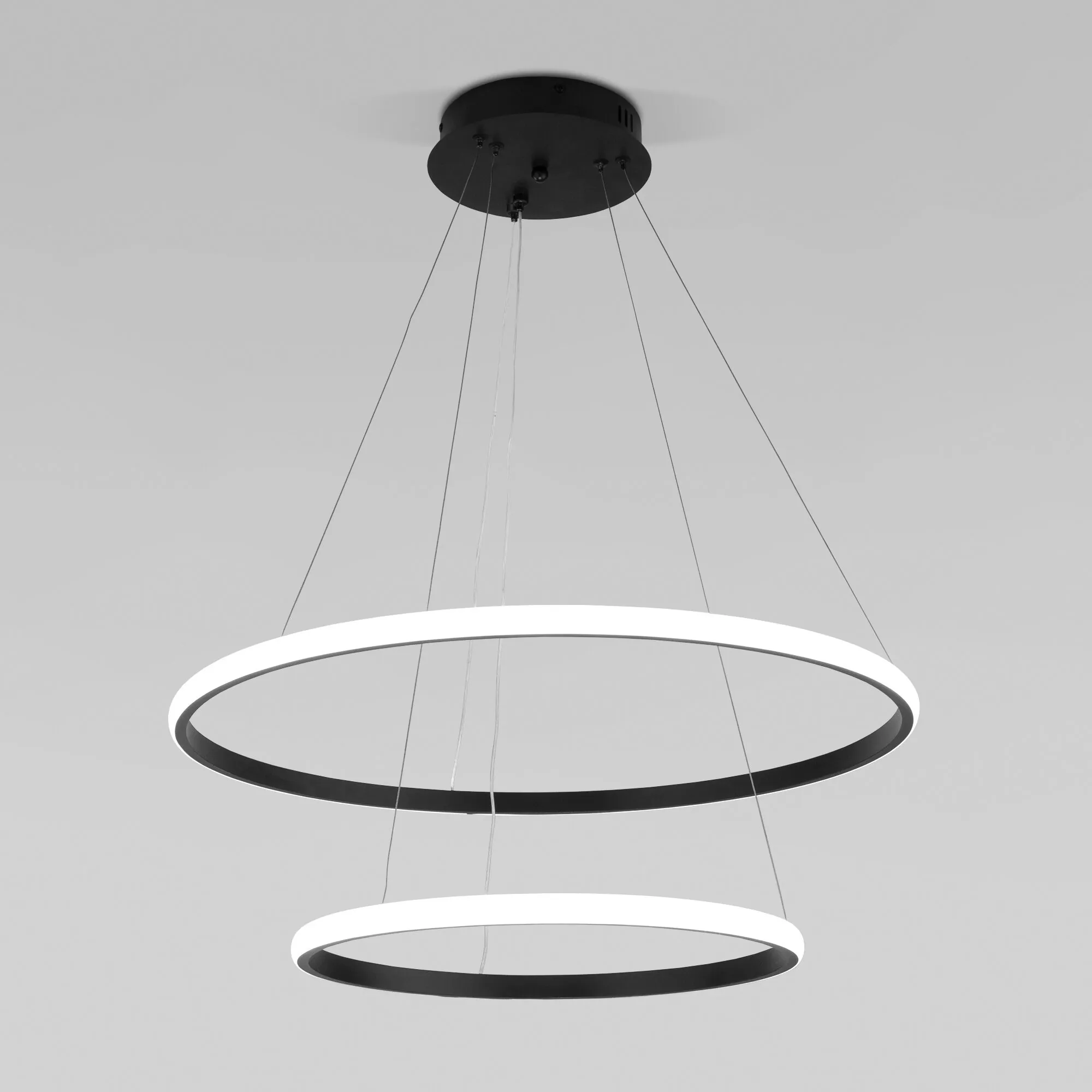 Артикул: 90264/2; Бренд: Eurosvet; Серия: Collars; Стиль: Minimalism; High-tech; Функционализм; Контемпорари; Modern; товарная группа: Подвесной светильник; Тип светильника: встроенные LED; место размещения: гостиница;гостиная;загородный дом;офис;кабинет;кафе;кухня;спальня; Срок службы, г: 6; Тип крепления: планка; Степень защиты: IP20; Площадь освещения, м2: 17; Класс электро-безопасности: I; Температурный режим: -10 ... +40; Коэффициент пульсации, %: < 5; Кол-во светодиодов: 610; Тип ламп: металл; Тип светодиодов: светодиодная лента;SMD; Общая мощность, W: 92; Световой поток, Lm: 7000; Цветовая температура, K: 3300;4200;6500; Индекс цветопередачи: > 80; Срок службы светодиодов, ч: 50000; Материал: Металл; Цвет: черный; Цвет каркаса: черный, Черный; Умный дом: совместим с умным выключателем;совместим с умным реле; Гарантия, мес: 60; Длина, мм: 600; Ширина, мм: 600; min высота: 250; max высота: 1150; Диаметр потолочной чаши, мм: 180; Вес упаковки, кг: 2.475; Длина упаковки, см: 66; Ширина упаковки, см: 66.4; Высота упаковки, см: 9.5; Объем упаковки, м3: 0.04163280; Штрихкод: 4690389185830