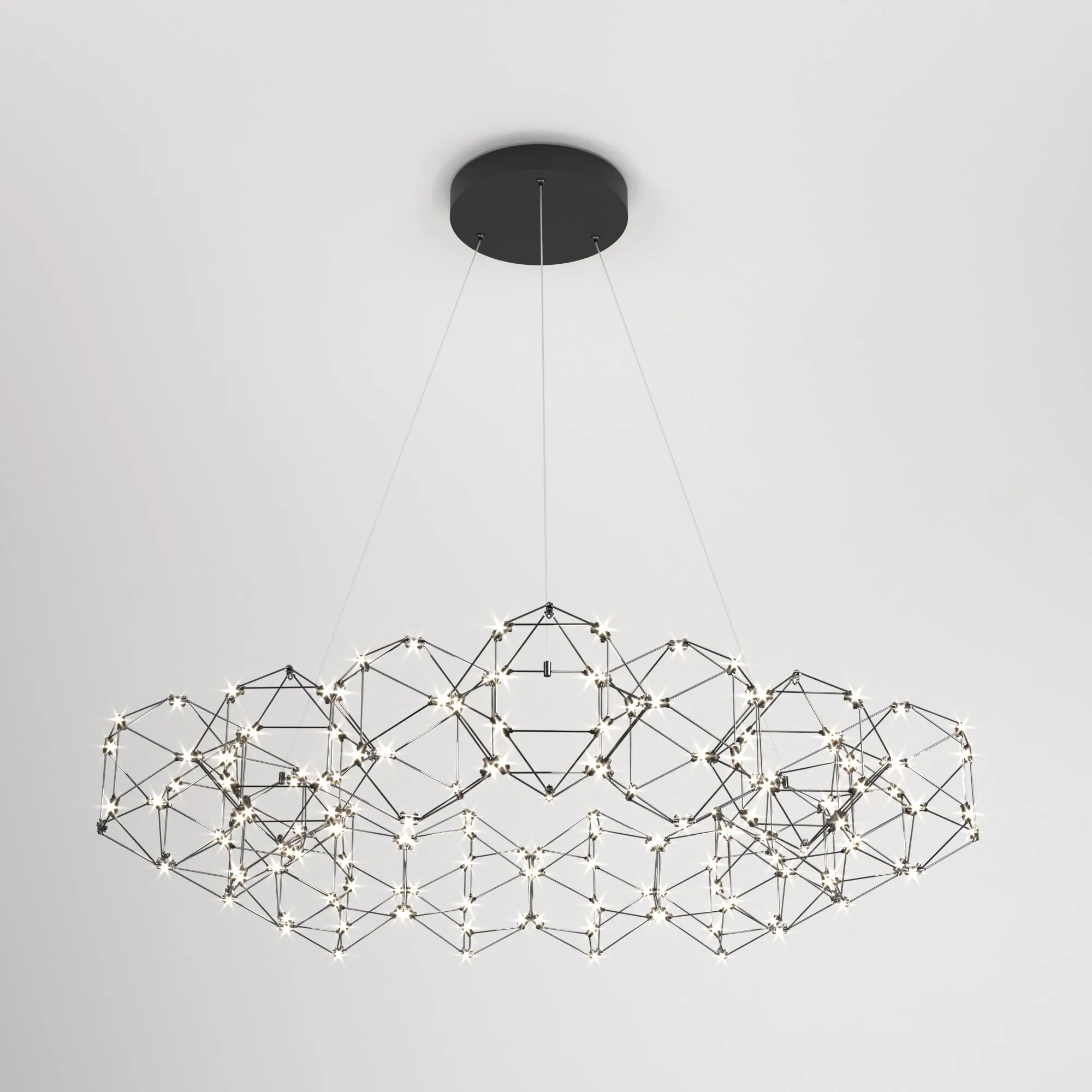 Артикул: 90169/15; Бренд: Eurosvet; Серия: Uma; Стиль: Art Deco; товарная группа: подвесной акцентный светильник; Тип светильника: встроенные LED; место размещения: гостиница;гостиная;загородный дом;офис;кабинет;кафе;кухня;спальня; Срок службы, г: 6; Тип крепления: планка; Степень защиты: IP20; Питание: 230 В, 50 Гц; Площадь освещения, м2: 10; Класс электро-безопасности: I; Температурный режим: -10 ... +40; Коэффициент пульсации, %: < 5; Кол-во светодиодов: 180; Тип ламп: металл; Тип светодиодов: светодиодная плата;SMD; Общая мощность, W: 69; Световой поток, Lm: 4530; Цветовая температура, K: 4000; Индекс цветопередачи: > 80; Срок службы светодиодов, ч: 50000; Материал: Металл; Материал плафона: металл, Металл; Цвет: чёрный жемчуг; Цвет каркаса: Черный жемчуг, чёрный жемчуг, черный жемчуг; Цвет плафона: чёрный жемчуг, черный жемчуг; Умный дом: совместим с умным выключателем;совместим с умным реле; Гарантия, мес: 60; Длина, мм: 1060; Ширина, мм: 1060; min высота: 800; max высота: 1500; Вес упаковки, кг: 8.5; Длина упаковки, см: 120; Ширина упаковки, см: 120; Высота упаковки, см: 29.4; Объем упаковки, м3: 0.42336000; Штрихкод: 4690389188510