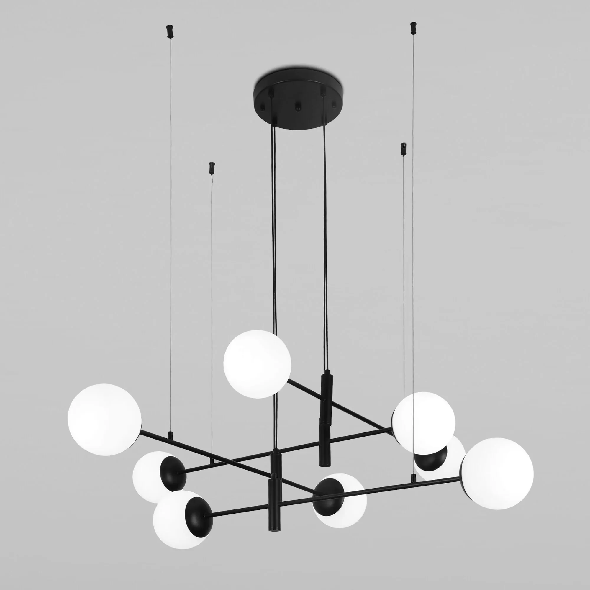 Артикул: 70146/8; Бренд: Eurosvet; Серия: Planet; Стиль: Loft; товарная группа: Подвесной светильник; Тип светильника: сменная лампа; место размещения: гостиница;кафе;кухня;кабинет;офис;спальня;гостиная; Срок службы, г: 8; Тип крепления: подвесной; планка; Степень защиты: IP20; Питание: 230 В, 50 Гц; Площадь освещения, м2: 16; Класс электро-безопасности: I; Температурный режим: -10 ... +40; Тип ламп: металл; Тип цоколя: E27; Материал: металл;стекло; Материал плафона: стекло, Стекло; Цвет: черный;белый; Цвет каркаса: черный, Черный; Цвет плафона: белый, Белый; Умный дом: совместим с умным выключателем;совместим с умным реле; Гарантия, мес: 12; Длина, мм: 1170; Ширина, мм: 1170; высота: 1070; Высота встраиваемой части, мм: 60; Вес упаковки, кг: 4.541; Длина упаковки, см: 78.5; Ширина упаковки, см: 40.5; Высота упаковки, см: 28.8; Объем упаковки, м3: 0.09156240; Штрихкод: 4690389190766