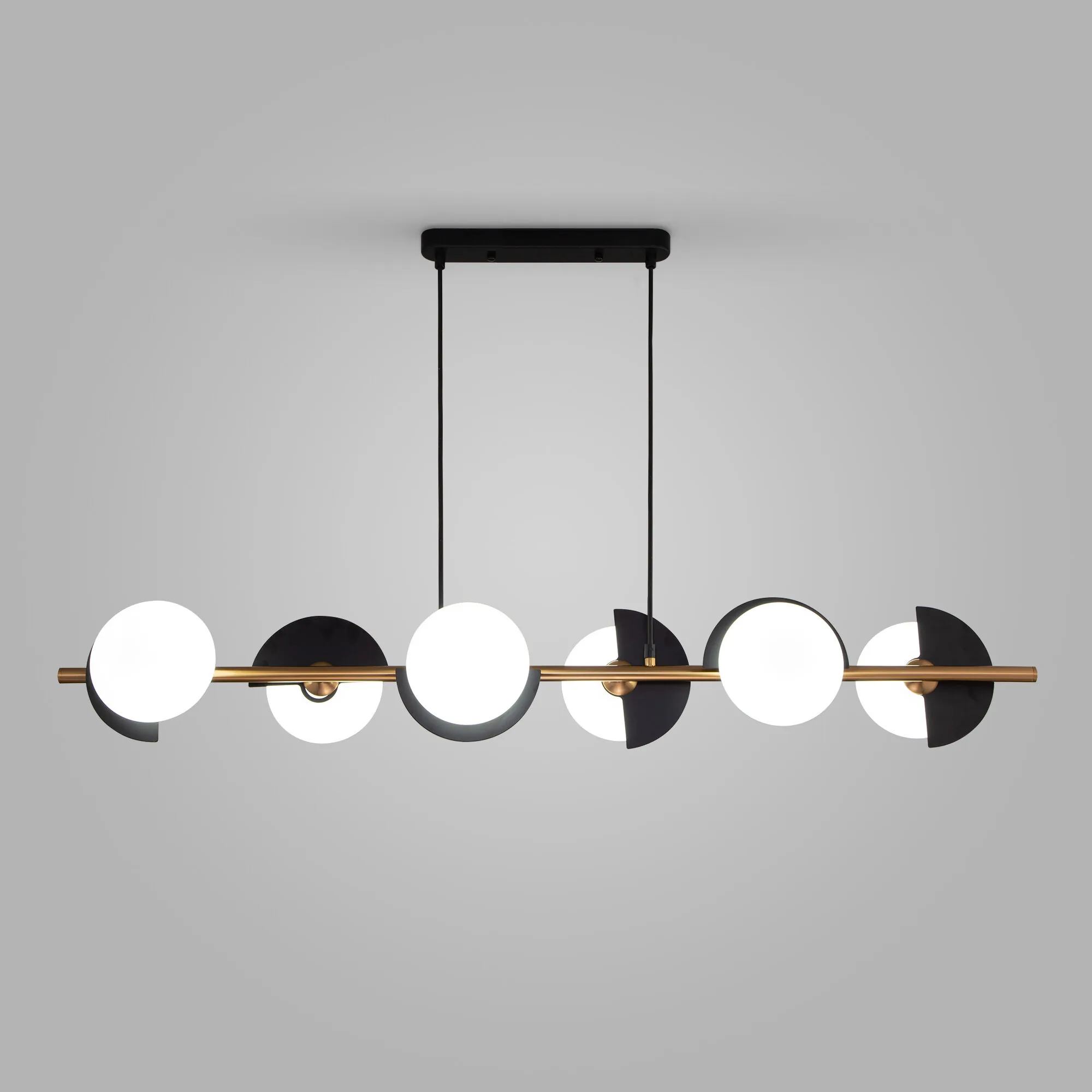 Артикул: 70149/6; Бренд: Eurosvet; Серия: Moity; Стиль: Minimalism; Контемпорари; Art Deco; Modern; Постмодернизм; товарная группа: Подвесной светильник; Тип светильника: сменная лампа; место размещения: спальня;кухня;кафе;гостиная;кабинет;офис; Срок службы, г: 8; Тип крепления: планка; Степень защиты: IP20; Питание: 230 В, 50 Гц; Площадь освещения, м2: 7; Класс электро-безопасности: I; Температурный режим: -10 ... +40; Коэффициент пульсации, %: < 5; Тип ламп: металл; Тип цоколя: G9; Материал: металл;стекло; Материал плафона: стекло, Стекло; Цвет: черный;латунь; Цвет каркаса: черный;латунь; Цвет плафона: белый, Белый; Умный дом: совместим с умным выключателем;совместим с умным реле; Гарантия, мес: 12; Длина, мм: 1140; Ширина, мм: 260; min высота: 300; max высота: 1100; Высота встраиваемой части, мм: 25; Вес упаковки, кг: 3.436; Длина упаковки, см: 79.8; Ширина упаковки, см: 17.3; Высота упаковки, см: 57; Объем упаковки, м3: 0.07869078; Штрихкод: 4690389199806