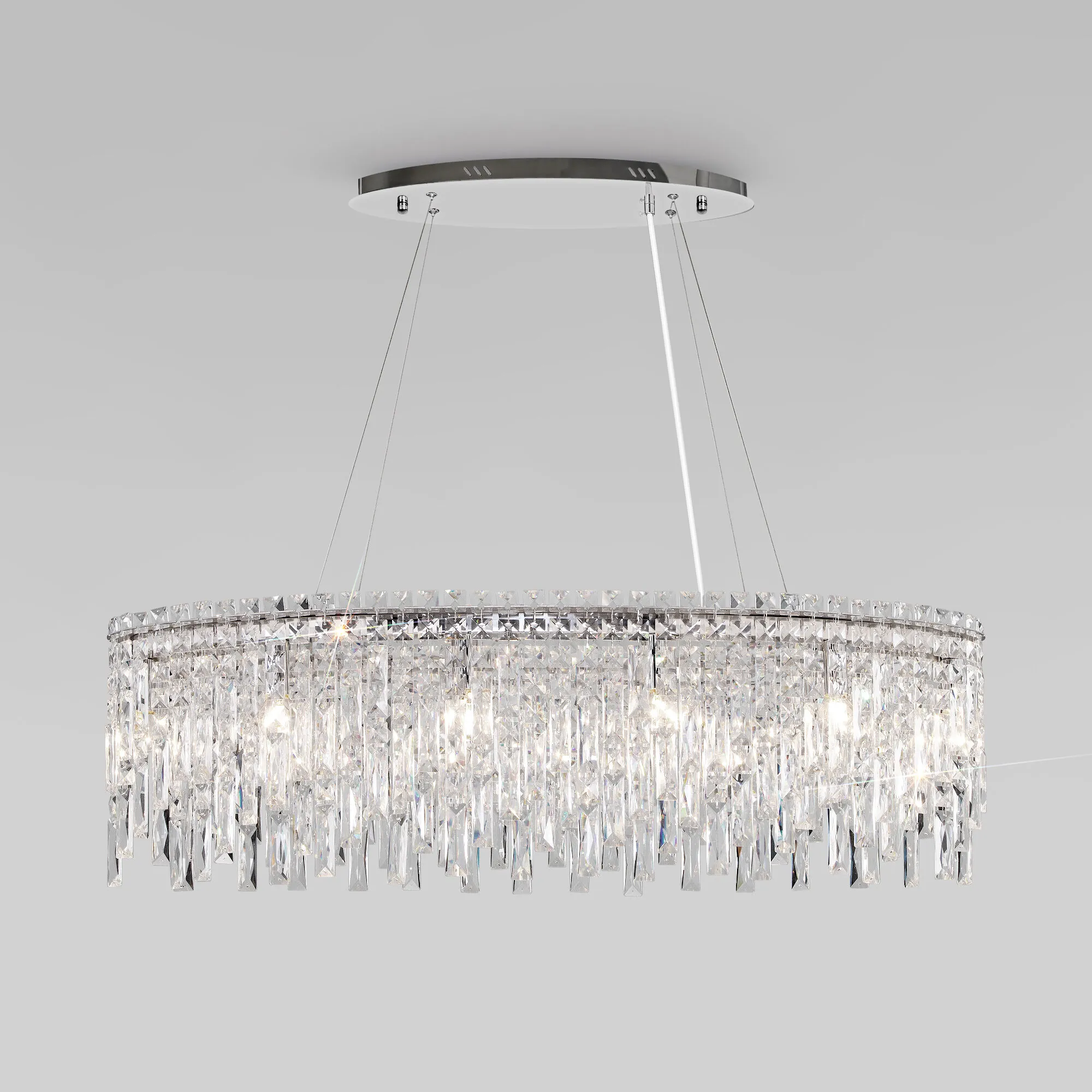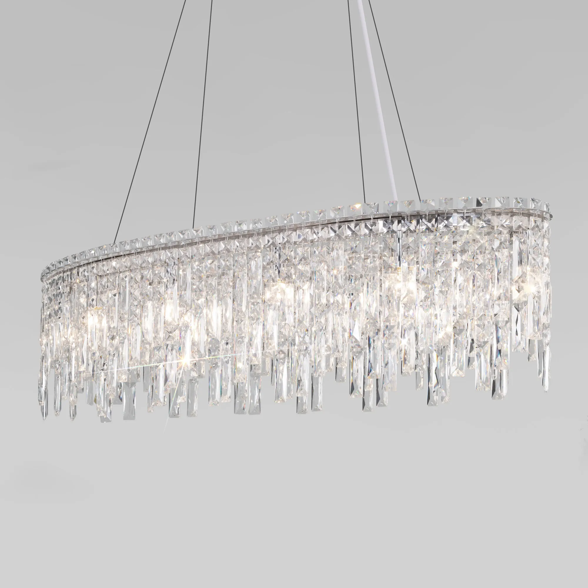 Артикул: 60159/10; Бренд: Eurosvet; Серия: Blitz; Стиль: классика; товарная группа: Подвесной светильник; Тип светильника: сменная лампа; место размещения: гостиная;кухня;кафе; Срок службы, г: 8; Тип крепления: планка; Степень защиты: IP20; Питание: 230 В, 50 Гц; Площадь освещения, м2: 18; Класс электро-безопасности: I; Температурный режим: -10 ... +40; Тип ламп: металл; Тип цоколя: E14; Материал: металл;хрусталь; Материал плафона: хрусталь; Цвет: хром; Цвет каркаса: хром, Хром; Цвет плафона: прозрачный, Прозрачный; Умный дом: совместим с умным выключателем;совместим с умным реле; Гарантия, мес: 12; Длина, мм: 1000; Ширина, мм: 350; min высота: 400; max высота: 1100; Высота встраиваемой части, мм: 40; Вес упаковки, кг: 15.94; Длина упаковки, см: 106.5; Ширина упаковки, см: 42.6; Высота упаковки, см: 23.5; Объем упаковки, м3: 0.10661715; Штрихкод: 4690389201431