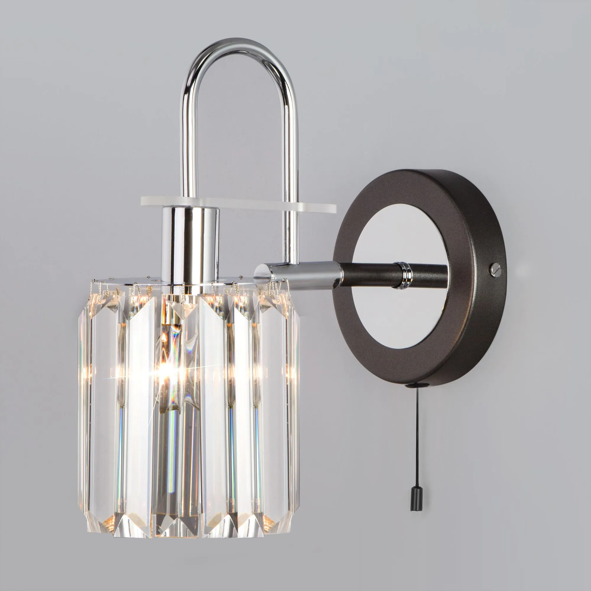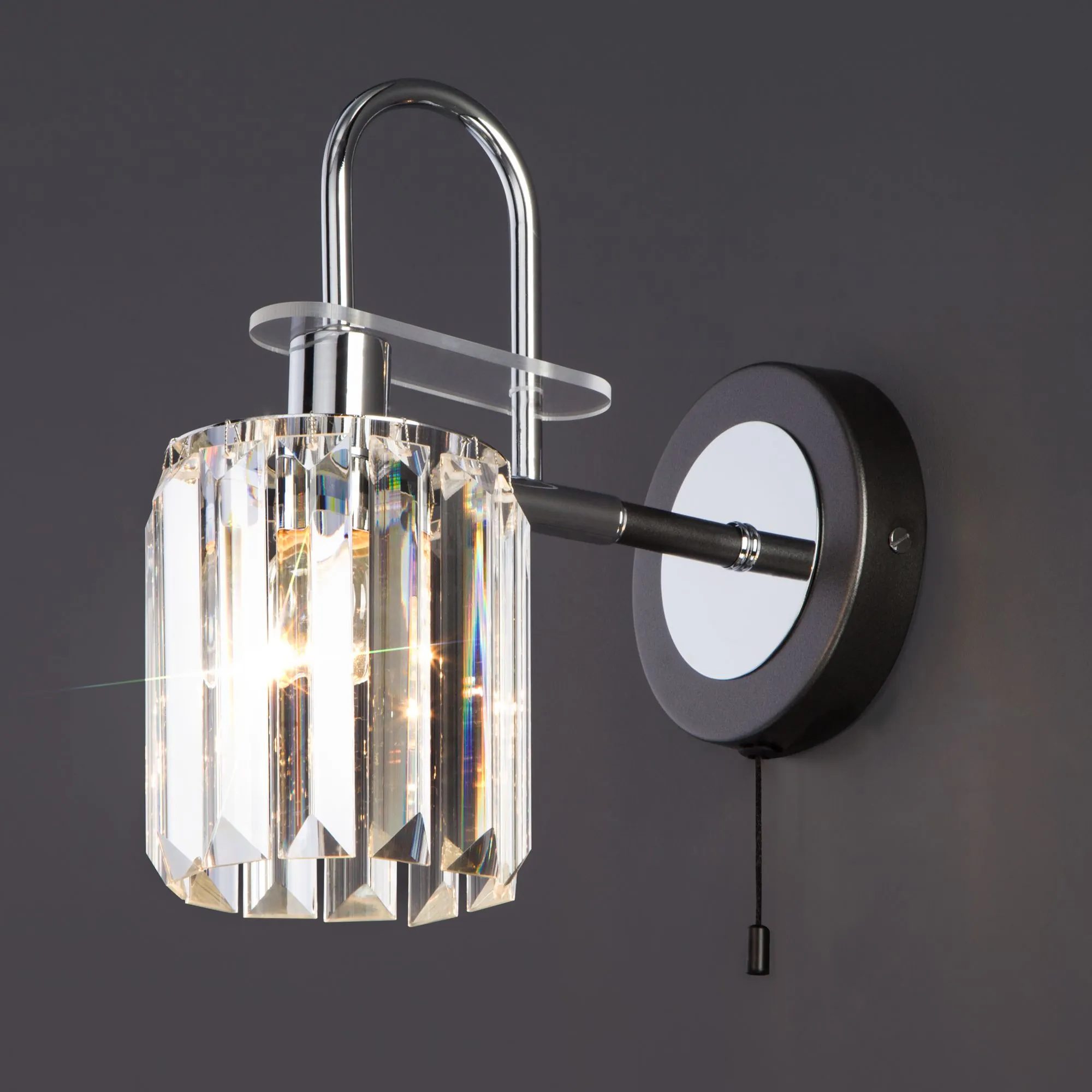Артикул: 70090/1; Бренд: Eurosvet; Серия: Tenia; Стиль: Classic; товарная группа: настенный светильник; Тип светильника: сменная лампа; место размещения: спальня;гостиная;гостиница; Срок службы, г: 8; Тип крепления: планка; Степень защиты: IP20; Питание: 230 В, 50 Гц; Площадь освещения, м2: 4; Класс электро-безопасности: I; Температурный режим: -10 ... +40; Коэффициент пульсации, %: < 5; Тип ламп: металл; Тип цоколя: E14; Материал: металл;хрусталь; Материал плафона: хрусталь; Цвет: прозрачный;черный;хром; Цвет каркаса: черный;хром; Цвет плафона: прозрачный, Прозрачный; Умный дом: совместим с умным реле;совместим с умным выключателем; Гарантия, мес: 12; Длина, мм: 120; Ширина, мм: 260; высота: 230; Диаметр настенной чаши, мм: 120; Высота встраиваемой части, мм: 60; Вес упаковки, кг: 0.885; Длина упаковки, см: 23.1; Ширина упаковки, см: 18.7; Высота упаковки, см: 12.1; Объем упаковки, м3: 0.00522684; Штрихкод: 4690389140730