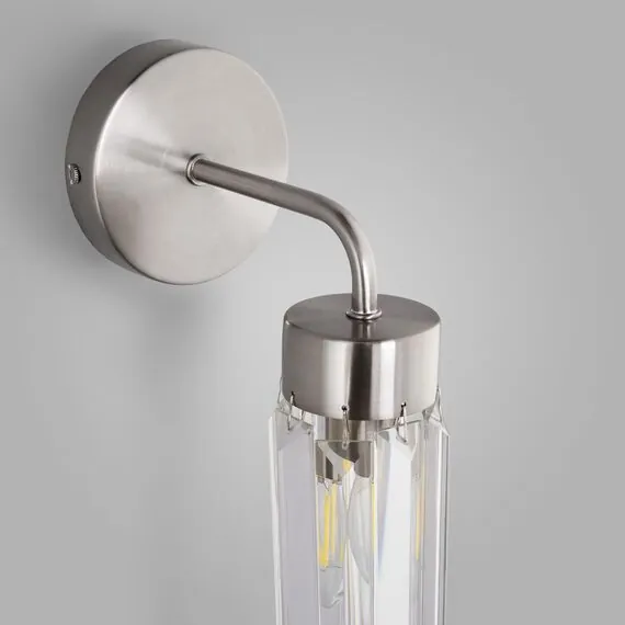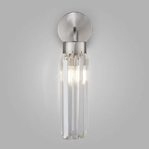 Артикул: 60163/1; Бренд: Eurosvet; Серия: Gilian; Стиль: классика; товарная группа: настенный светильник; Тип светильника: сменная лампа; место размещения: спальня;гостиная; Срок службы, г: 8; Тип крепления: планка; Степень защиты: IP20; Питание: 230 В, 50 Гц; Площадь освещения, м2: 2; Класс электро-безопасности: I; Температурный режим: -10 ... +40; Коэффициент пульсации, %: < 5; Тип ламп: металл; Тип цоколя: E14; Материал: металл;хрусталь; Материал плафона: хрусталь; Цвет: никель; Цвет каркаса: никель, Никель; Цвет плафона: прозрачный, Прозрачный; Умный дом: совместим с умным выключателем;совместим с умным реле; Гарантия, мес: 12; Длина, мм: 170; Ширина, мм: 100; высота: 315; Диаметр настенной чаши, мм: 100; Высота встраиваемой части, мм: 60; Вес упаковки, кг: 0.891; Длина упаковки, см: 26.3; Ширина упаковки, см: 12.6; Высота упаковки, см: 18; Объем упаковки, м3: 0.00596484; Штрихкод: 4690389203121