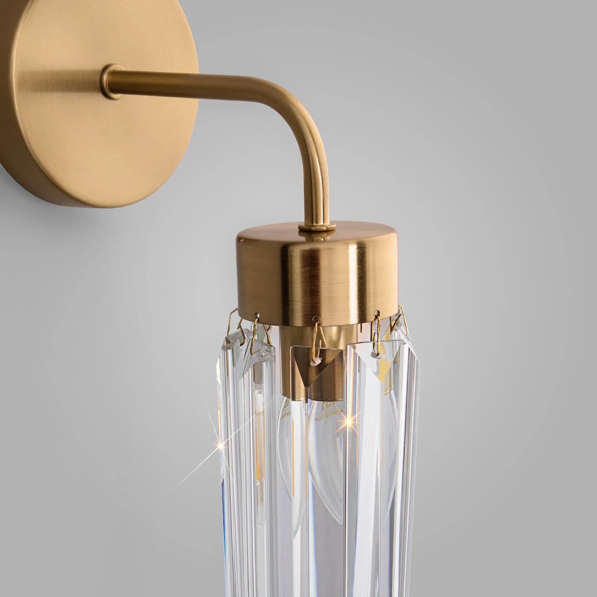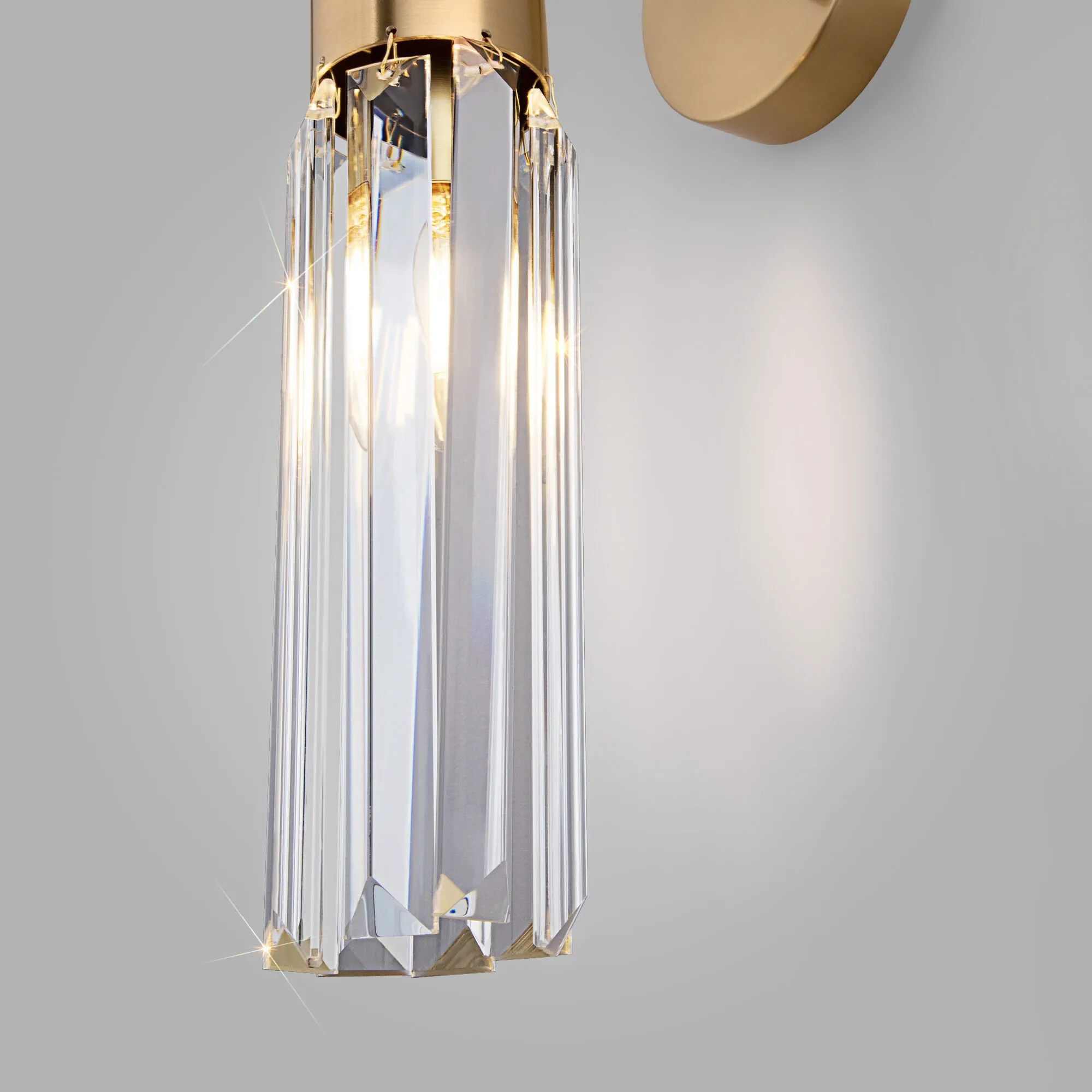 Артикул: 60163/1; Бренд: Eurosvet; Серия: Gilian; Стиль: классика; товарная группа: настенный светильник; Тип светильника: сменная лампа; место размещения: спальня;гостиная;гостиница; Тип крепления: планка; Степень защиты: IP20; Питание: 230 В, 50 Гц; Площадь освещения, м2: 2; Класс электро-безопасности: I; Температурный режим: -10 ... +40; Коэффициент пульсации, %: < 5; Тип ламп: металл; Тип цоколя: E14; Материал: металл;хрусталь; Материал плафона: хрусталь; Цвет: Латунь; Цвет каркаса: латунь, Латунь; Цвет плафона: прозрачный, Прозрачный; Умный дом: совместим с умным выключателем;совместим с умным реле; Гарантия, мес: 12; Длина, мм: 170; Ширина, мм: 100; высота: 315; Диаметр настенной чаши, мм: 100; Высота встраиваемой части, мм: 60; Вес упаковки, кг: 0.867; Длина упаковки, см: 26.1; Ширина упаковки, см: 12.2; Высота упаковки, см: 18.3; Объем упаковки, м3: 0.00582709; Штрихкод: 4690389202957