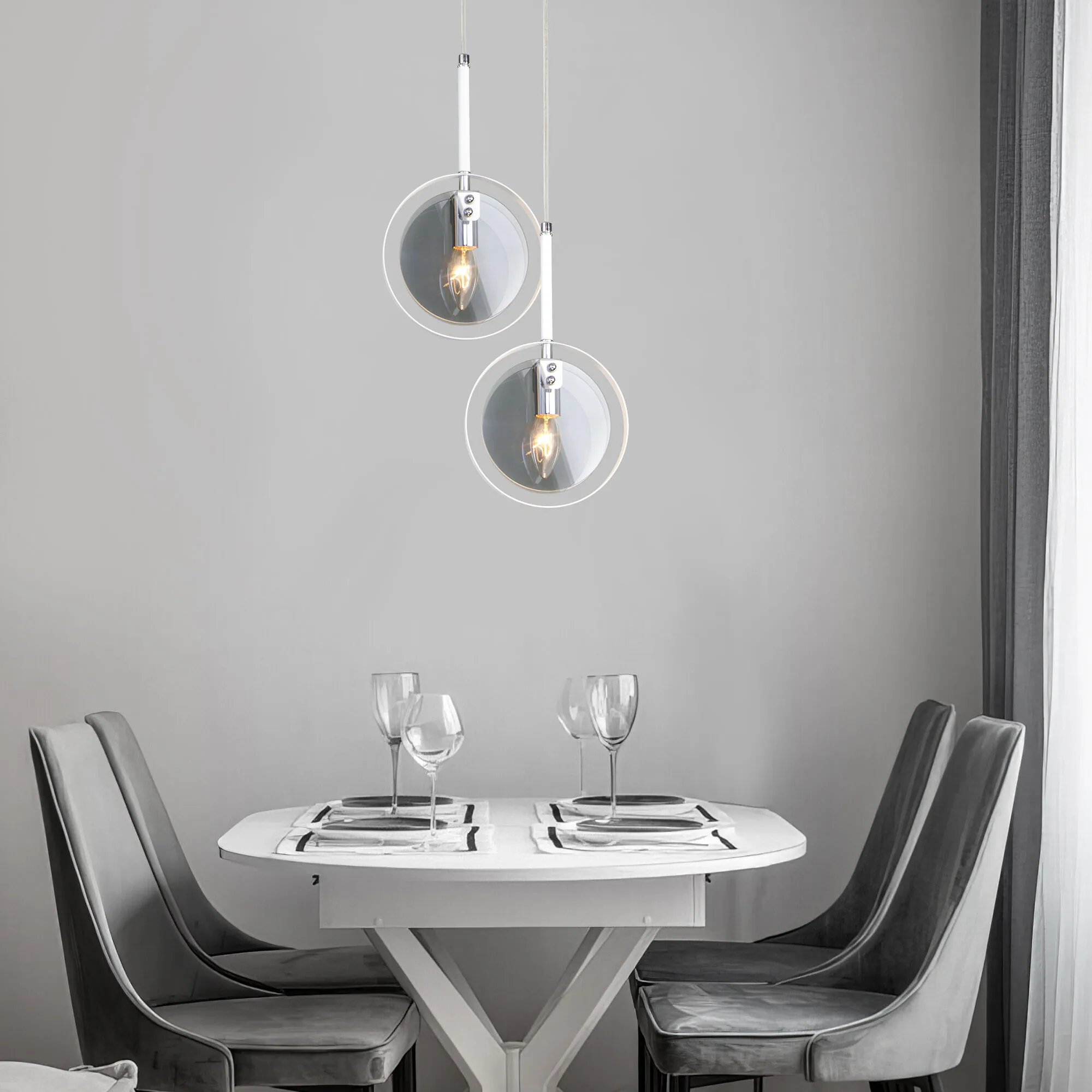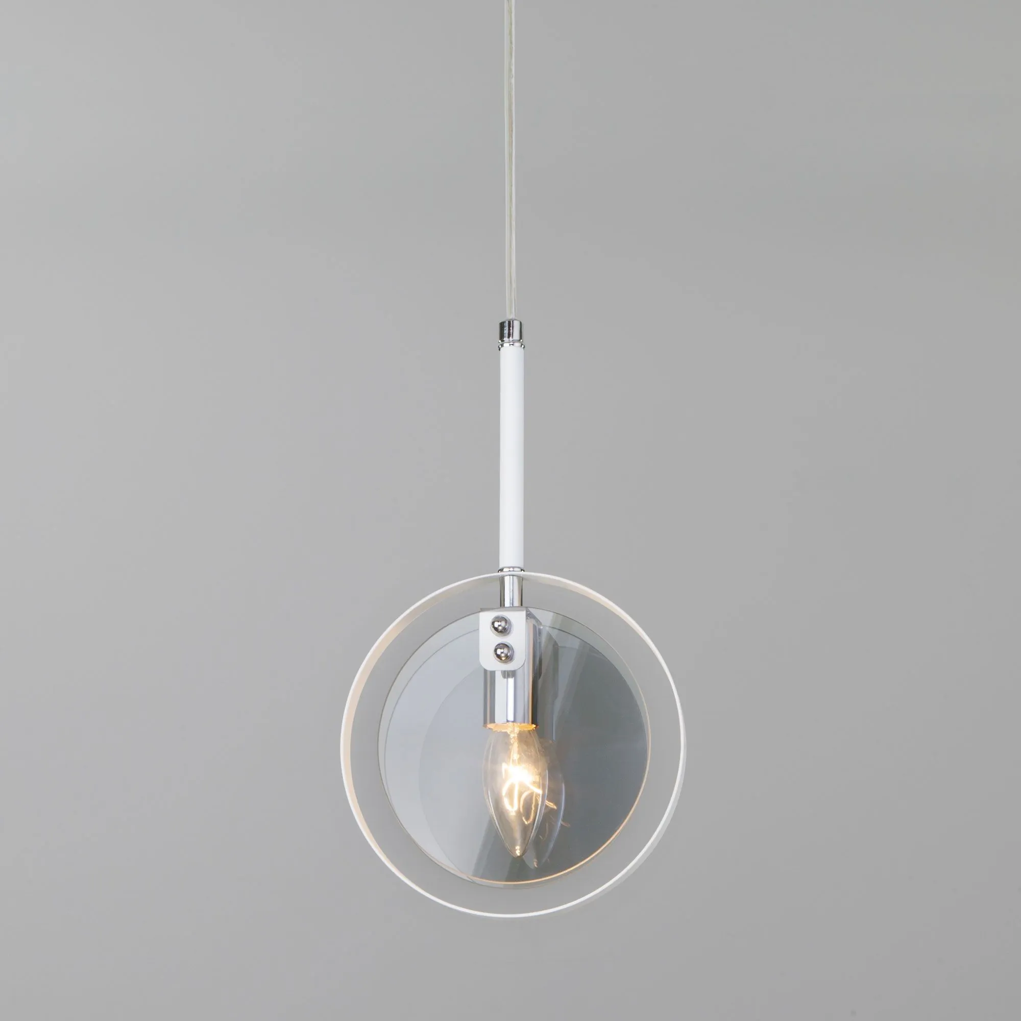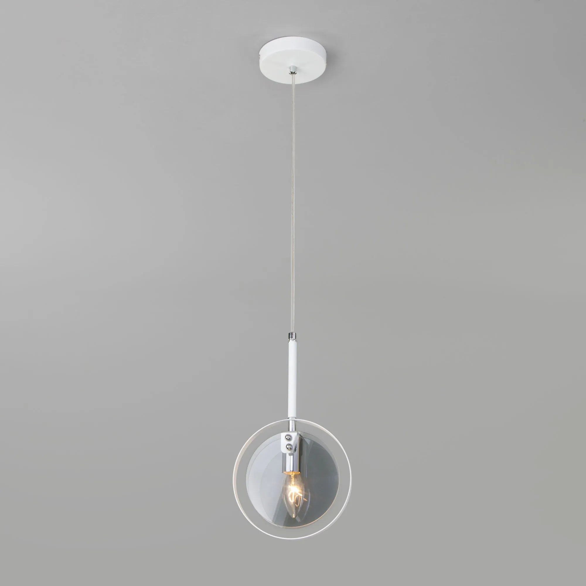 Артикул: 50121/1; Бренд: Eurosvet; Серия: Gallo; Стиль: Loft; Индустриальный; Minimalism; Контемпорари; товарная группа: подвесной акцентный светильник; Тип светильника: сменная лампа; место размещения: кухня;спальня;гостиница;гостиная;загородный дом;кабинет;кафе; Срок службы, г: 8; Тип крепления: планка; Степень защиты: IP20; Питание: 230 В, 50 Гц; Площадь освещения, м2: 4; Класс электро-безопасности: I; Температурный режим: -10 ... +40; Коэффициент пульсации, %: < 5; Тип ламп: металл; Тип цоколя: E14; Материал: металл;стекло; Материал плафона: стекло, Стекло; Цвет: белый;дымчатый;хром; Цвет каркаса: белый;хром; Цвет плафона: дымчатый, Дымчатый; Умный дом: совместим с умным реле;совместим с умным выключателем; Гарантия, мес: 12; Длина, мм: 185; Ширина, мм: 65; min высота: 400; max высота: 758; Диаметр потолочной чаши, мм: 120; Высота встраиваемой части, мм: 60; Вес упаковки, кг: 0.996; Длина упаковки, см: 34.1; Ширина упаковки, см: 1.1; Высота упаковки, см: 9.8; Объем упаковки, м3: 0.00036760; Штрихкод: 4690389157868