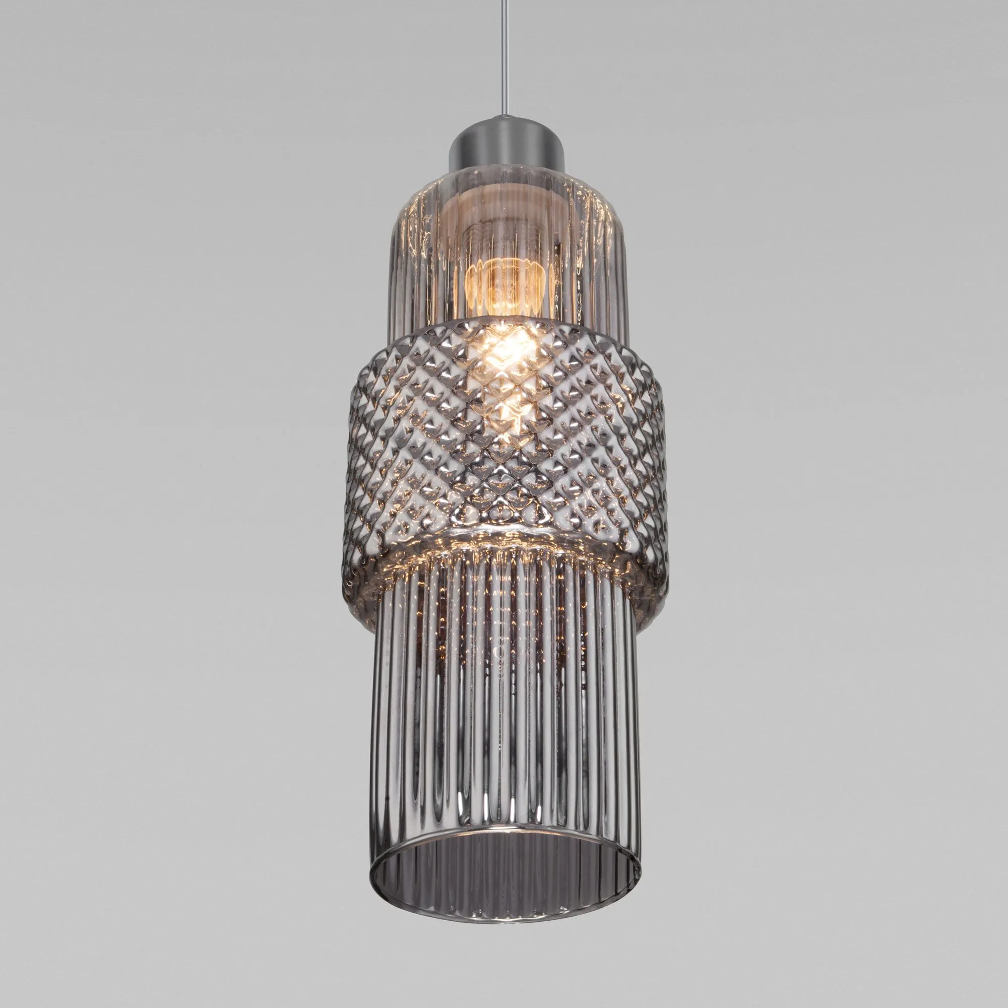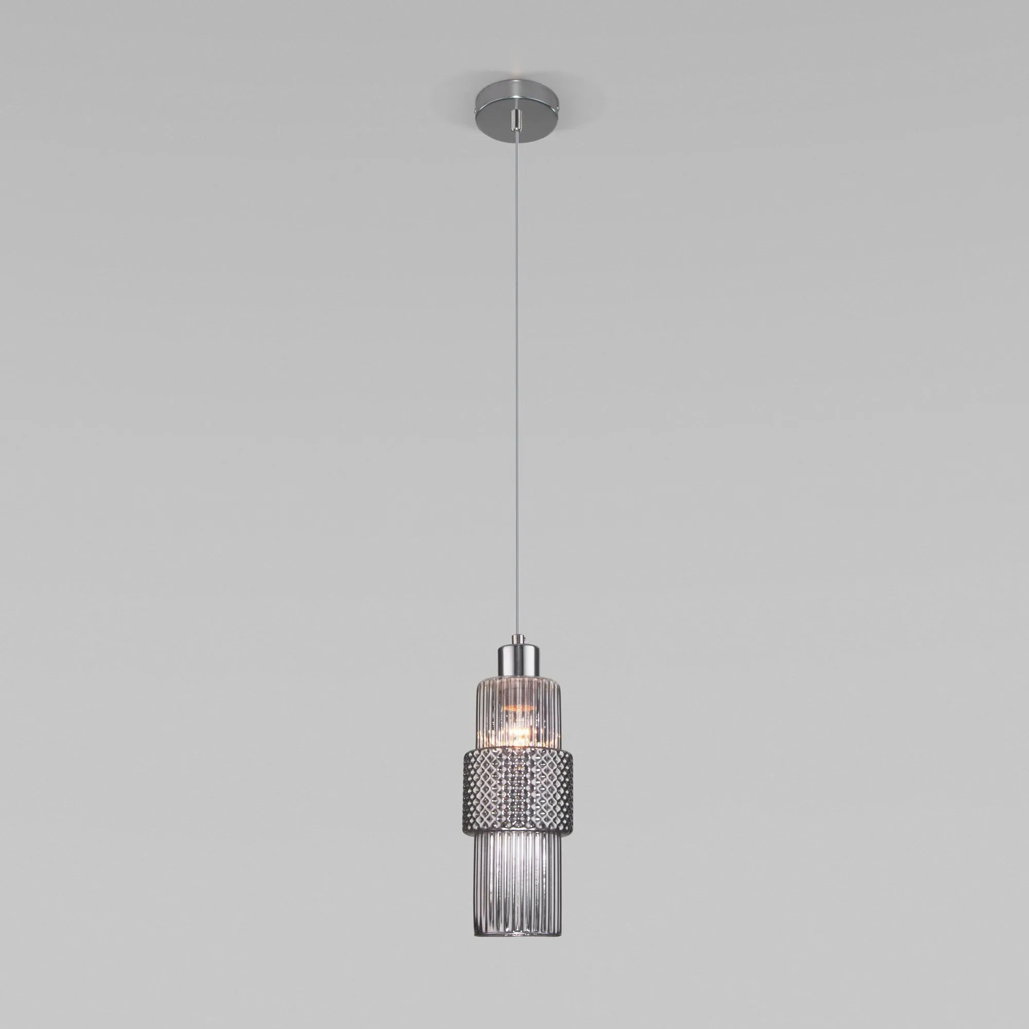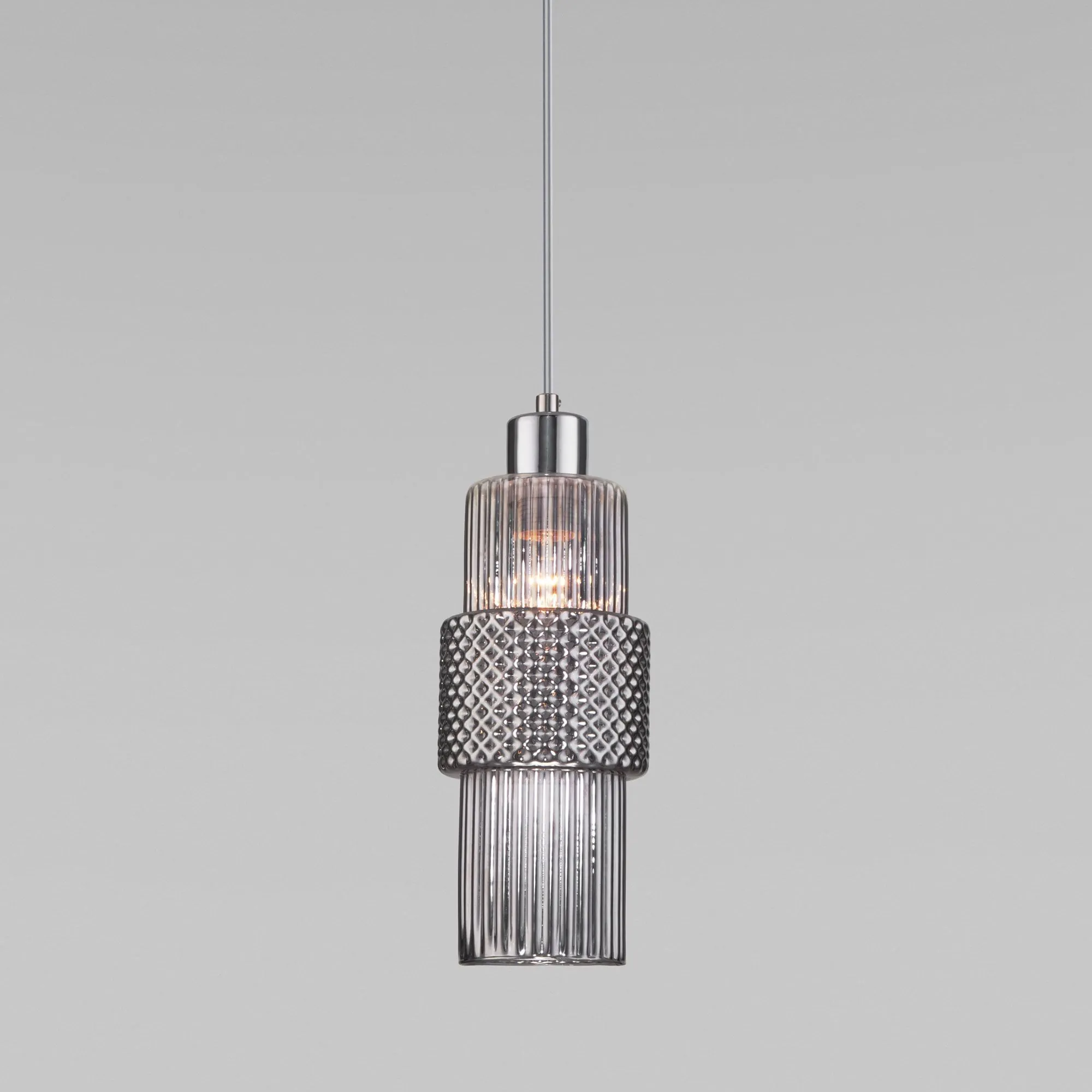 Артикул: 50209/1; Бренд: Eurosvet; Серия: Soho; Стиль: Art Deco; товарная группа: подвесной акцентный светильник; Тип светильника: сменная лампа; место размещения: гостиница;гостиная;загородный дом;офис;кабинет;кафе;кухня;спальня; Срок службы, г: 8; Тип крепления: планка; Степень защиты: IP20; Питание: 230 В, 50 Гц; Площадь освещения, м2: 3; Класс электро-безопасности: I; Температурный режим: -10 ... +40; Тип ламп: металл; Тип цоколя: E27; Материал: металл;стекло; Материал плафона: стекло, Стекло; Цвет: хром;дымчатый; Цвет каркаса: хром, Хром; Цвет плафона: дымчатый, Дымчатый; Умный дом: совместим с умным реле;совместим с умным выключателем; Гарантия, мес: 12; Длина, мм: 110; Ширина, мм: 110; min высота: 400; max высота: 1200; Диаметр потолочной чаши, мм: 100; Высота встраиваемой части, мм: 40; Вес упаковки, кг: 0.739; Длина упаковки, см: 18.2; Ширина упаковки, см: 18.4; Высота упаковки, см: 38.3; Объем упаковки, м3: 0.01282590; Штрихкод: 4690389174841