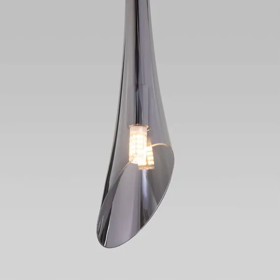 Артикул: 50224/1; Бренд: Eurosvet; Серия: Folio; Стиль: Art Deco; Minimalism; товарная группа: подвесной акцентный светильник; Тип светильника: сменная лампа; место размещения: гостиница;гостиная;загородный дом;офис;кабинет;кафе;кухня;спальня; Срок службы, г: 8; Тип крепления: планка; Степень защиты: IP20; Питание: 230 В, 50 Гц; Площадь освещения, м2: 1; Класс электро-безопасности: I; Температурный режим: -10 ... +40; Тип ламп: металл; Тип цоколя: G9; Материал: Металл; Материал плафона: стекло, Стекло; Цвет: хром; Цвет каркаса: хром, Хром; Цвет плафона: дымчатый, Дымчатый; Умный дом: совместим с умным выключателем;совместим с умным реле; Гарантия, мес: 12; Длина, мм: 165; Ширина, мм: 65; min высота: 670; max высота: 1500; Диаметр потолочной чаши, мм: 100; Высота встраиваемой части, мм: 5; Вес упаковки, кг: 0.635; Длина упаковки, см: 50.2; Ширина упаковки, см: 16.2; Высота упаковки, см: 12.5; Объем упаковки, м3: 0.01016550; Штрихкод: 4690389186165