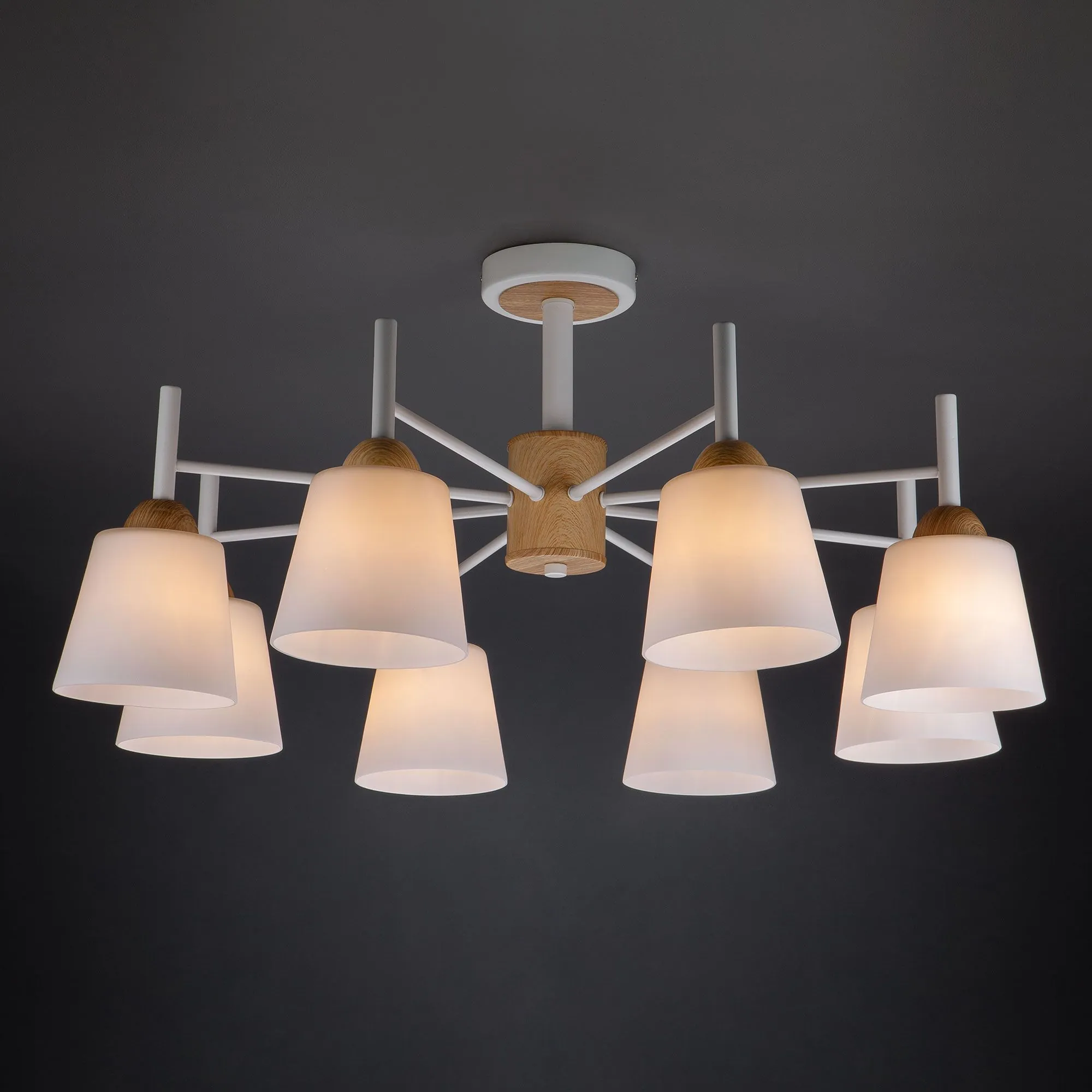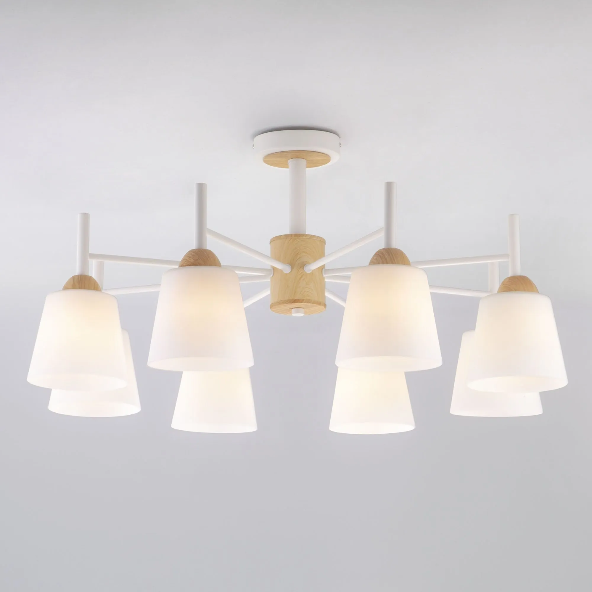 Артикул: 70085/8; Бренд: Eurosvet; Серия: Fresco; Стиль: Modern; Loft; товарная группа: Потолочный светильник; Тип светильника: сменная лампа; место размещения: спальня;гостиная;кухня; Срок службы, г: 6; Тип крепления: планка; Степень защиты: IP20; Питание: 230 В, 50 Гц; Площадь освещения, м2: 38; Класс электро-безопасности: I; Температурный режим: -10 ... +40; Коэффициент пульсации, %: < 5; Тип ламп: металл; Тип цоколя: E27; Материал: металл;стекло; Материал плафона: стекло, Стекло; Цвет: белый;светлое дерево; Цвет каркаса: белый;светлое дерево; Цвет плафона: белый, Белый; Умный дом: совместим с умным реле;совместим с умным выключателем; Гарантия, мес: 12; Длина, мм: 790; Ширина, мм: 790; высота: 370; Диаметр потолочной чаши, мм: 120; Высота встраиваемой части, мм: 60; Вес упаковки, кг: 5.079; Длина упаковки, см: 64.9; Ширина упаковки, см: 29.9; Высота упаковки, см: 23.2; Объем упаковки, м3: 0.04501983; Штрихкод: 4690389121777
