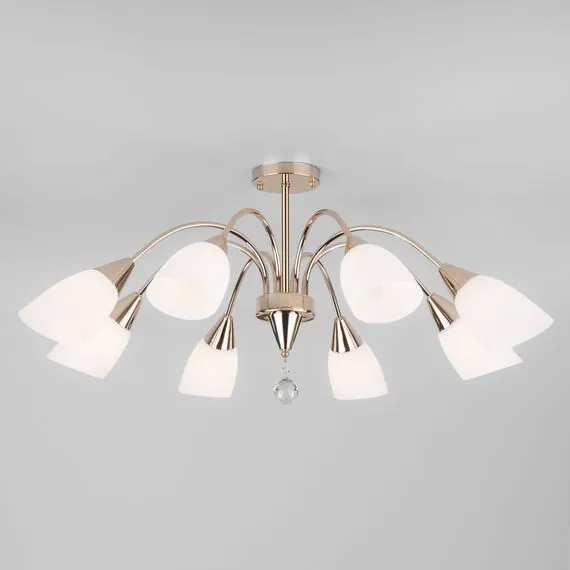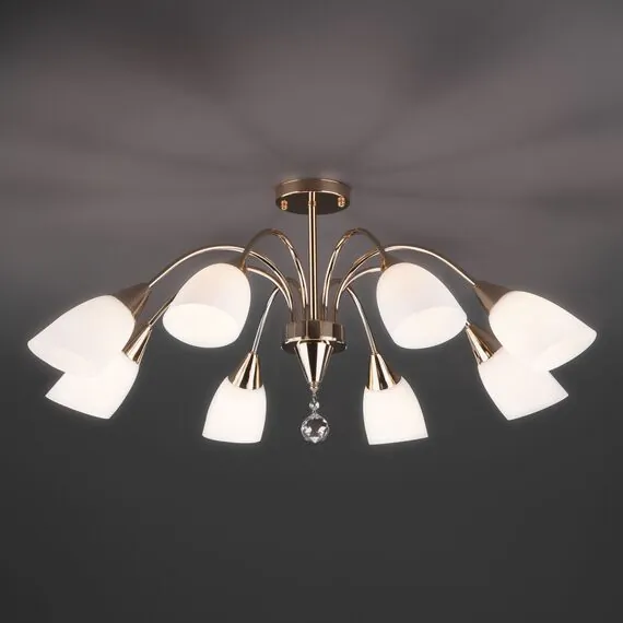 Артикул: 30149/8; Бренд: Eurosvet; Серия: Ellene; Стиль: Modern; товарная группа: Потолочный светильник; Тип светильника: сменная лампа; место размещения: спальня;гостиная; Срок службы, г: 6; Тип крепления: планка; Степень защиты: IP20; Площадь освещения, м2: 24; Класс электро-безопасности: I; Температурный режим: -10 ... +40; Коэффициент пульсации, %: < 5; Тип ламп: металл; Тип цоколя: E27; Материал: металл;стекло; Материал плафона: стекло, Стекло; Цвет: золото;белый; Цвет каркаса: золото, Золото; Цвет плафона: белый, Белый; Умный дом: совместим с умным реле;совместим с умным выключателем; Гарантия, мес: 12; Длина, мм: 890; Ширина, мм: 890; высота: 430; Диаметр потолочной чаши, мм: 120; Высота встраиваемой части, мм: 40; Вес упаковки, кг: 4.195; Длина упаковки, см: 46; Ширина упаковки, см: 37.1; Высота упаковки, см: 18.3; Объем упаковки, м3: 0.03123078; Штрихкод: 4690389138331
