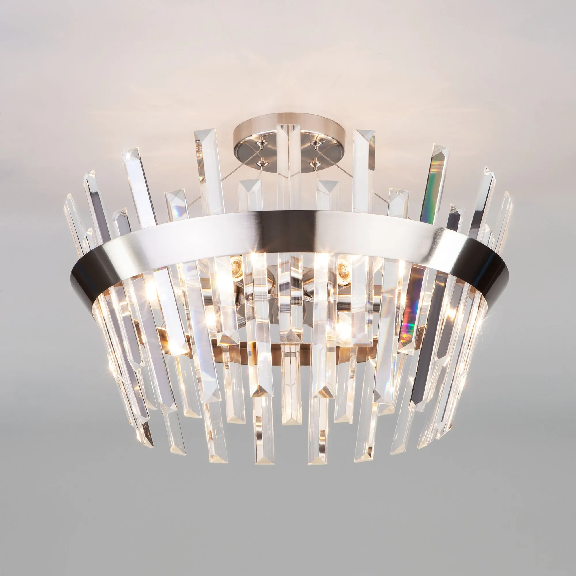Артикул: 10111/5; Бренд: Eurosvet; Серия: Steccato; Стиль: Art Deco; Контемпорари; Neo Classic; товарная группа: Потолочный светильник; Тип светильника: сменная лампа; место размещения: гостиная;спальня; Срок службы, г: 8; Тип крепления: планка; Степень защиты: IP20; Питание: 230 В, 50 Гц; Площадь освещения, м2: 9; Класс электро-безопасности: I; Температурный режим: -10 ... +40; Тип ламп: металл; Тип цоколя: E14; Материал: металл;хрусталь; Материал плафона: хрусталь; Цвет: никель; Цвет каркаса: никель, Никель; Цвет плафона: прозрачный, Прозрачный; Умный дом: совместим с умным реле;совместим с умным выключателем; Гарантия, мес: 12; Длина, мм: 500; Ширина, мм: 500; высота: 340; Диаметр потолочной чаши, мм: 120; Высота встраиваемой части, мм: 60; Вес упаковки, кг: 5.023; Длина упаковки, см: 50.4; Ширина упаковки, см: 49.1; Высота упаковки, см: 28.3; Объем упаковки, м3: 0.07003231; Штрихкод: 4690389148866