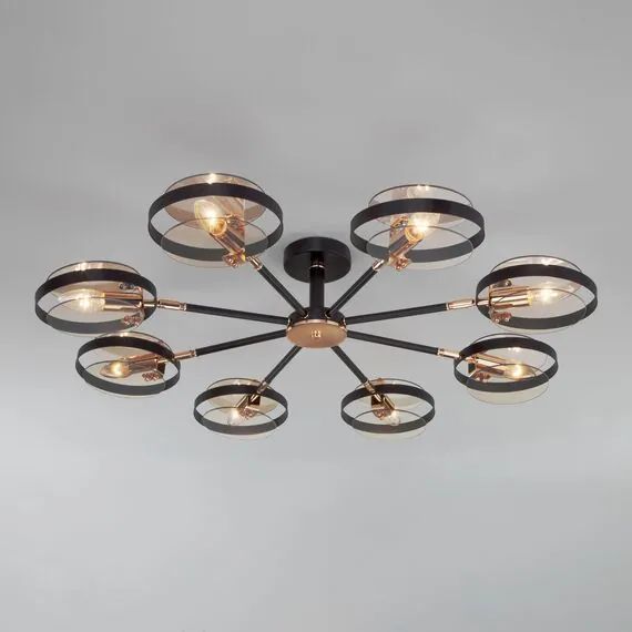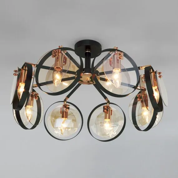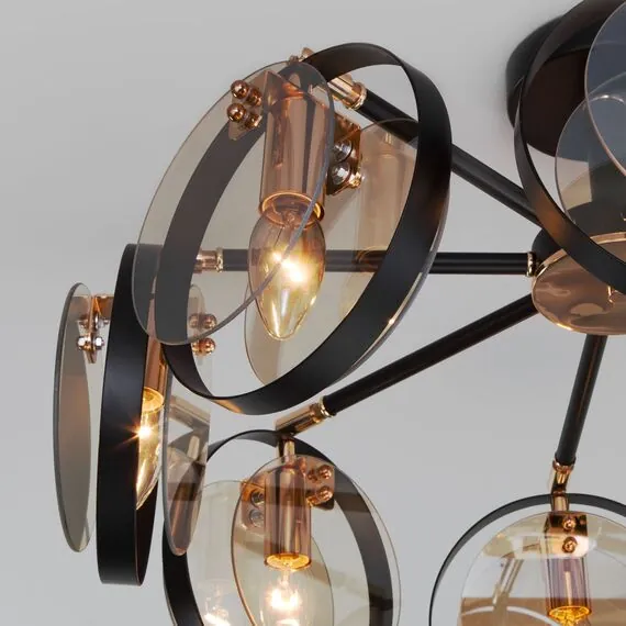 Артикул: 70121/8; Бренд: Eurosvet; Серия: Gallo; Стиль: Loft; Индустриальный; Контемпорари; Minimalism; товарная группа: Потолочный светильник; Тип светильника: сменная лампа; место размещения: гостиная;спальня;гостиница; Срок службы, г: 8; Тип крепления: планка; Степень защиты: IP20; Площадь освещения, м2: 22; Класс электро-безопасности: I; Температурный режим: -10 ... +40; Коэффициент пульсации, %: < 5; Тип ламп: металл; Тип цоколя: E14; Материал: металл;стекло; Материал плафона: стекло, Стекло; Цвет: черный;золото;янтарный; Цвет каркаса: черный;золото; Цвет плафона: янтарный, Янтарный; Умный дом: совместим с умным реле;совместим с умным выключателем; Гарантия, мес: 12; Длина, мм: 915; Ширина, мм: 915; высота: 185; Диаметр потолочной чаши, мм: 120; Высота встраиваемой части, мм: 60; Вес упаковки, кг: 5.503; Длина упаковки, см: 44.7; Ширина упаковки, см: 24.1; Высота упаковки, см: 19.3; Объем упаковки, м3: 0.02079131; Штрихкод: 4690389157790