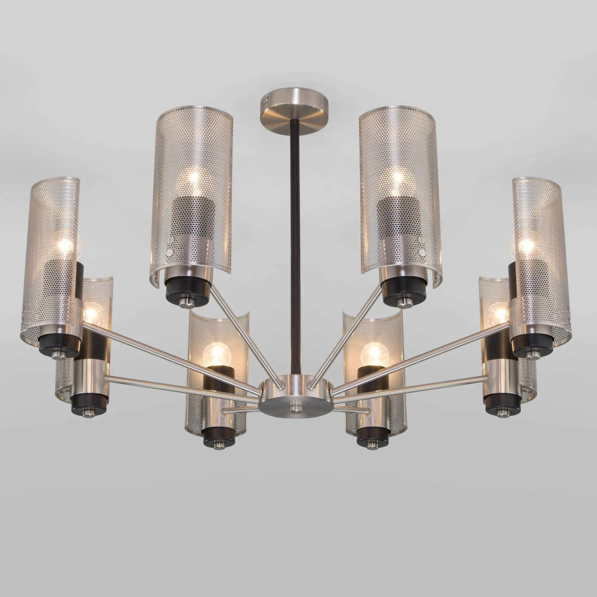 Артикул: 70139/8; Бренд: Eurosvet; Серия: Grino; Стиль: Loft; Индустриальный; товарная группа: Потолочный светильник; Тип светильника: сменная лампа; место размещения: гостиная;спальня;кабинет;гостиница; Срок службы, г: 6; Тип крепления: планка; Степень защиты: IP20; Площадь освещения, м2: 14; Класс электро-безопасности: I; Температурный режим: -10 ... +40; Коэффициент пульсации, %: < 5; Тип ламп: металл; Тип цоколя: E14; Материал: Металл; Материал плафона: металл, Металл; Цвет: никель; Цвет каркаса: никель, Никель; Цвет плафона: никель, Никель; Умный дом: совместим с умным реле;совместим с умным выключателем; Гарантия, мес: 12; Длина, мм: 800; Ширина, мм: 800; высота: 450; Диаметр потолочной чаши, мм: 120; Высота встраиваемой части, мм: 60; Вес упаковки, кг: 4.291; Длина упаковки, см: 40.1; Ширина упаковки, см: 26.3; Высота упаковки, см: 23.1; Объем упаковки, м3: 0.02436195; Штрихкод: 4690389180880