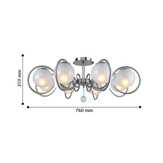 Артикул: 2349-8U; Бренд: F-Promo; Коллекция: Fabbio; Стиль: Classic; Назначение: гостиная; спальня; кухня; детская; холл; кафе; ресторан; кабинет; столовая; студия; Тип светильника: потолочная люстра; Тип крепления: планка; Степень защиты: IP20; Площадь освещения, м2: 16; Напряжение питания, V: 220; Натяжные потолки: Да; Тип ламп: 8*E14*40W, excluded; Общая мощность, W: 320; Материал: Металл, Стекло; Материал каркаса: металл, Металл; Материал плафона: стекло, Стекло; Цвет каркаса: никель, Никель; Цвет плафона: Матовый Белый, Матовый белый, матовый белый; Диммирование: нет; Наличие пульта: Нет; Гарантия, мес: 36; min высота: 310; max высота: 310; Диаметр, мм: 760; Высота потолочной чаши, мм: 25; Диаметр потолочной чаши, мм: 120; Высота плафона, мм: 310; Вес, кг: 3; Вес упаковки, кг: 4; Длина упаковки, см: 59.5; Ширина упаковки, см: 34; Высота упаковки, см: 29.5; Штрихкод: 4035726135633