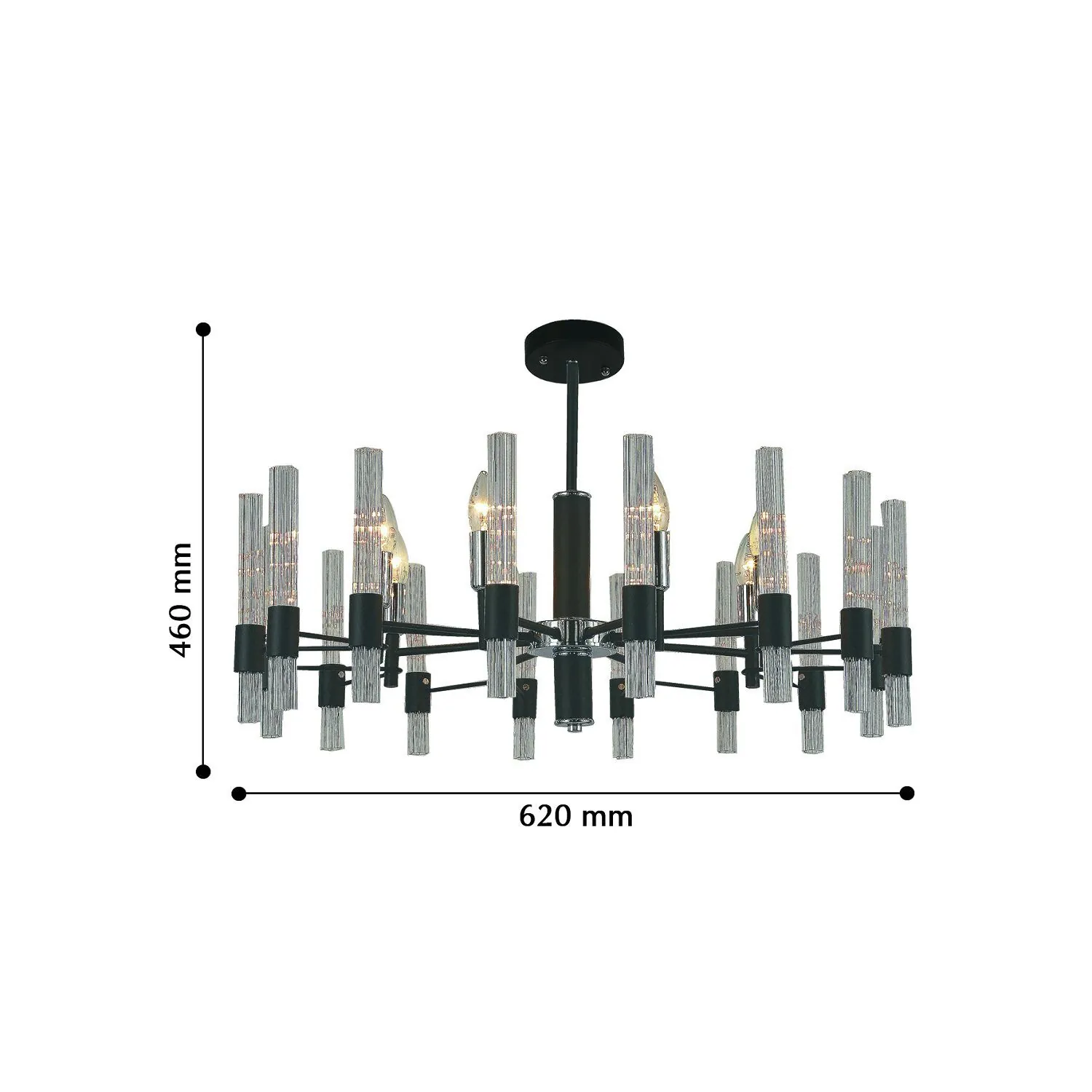 Артикул: 2490-8P; Бренд: F-Promo; Коллекция: Supreme; Стиль: Modern; Назначение: гостиная; спальня; кухня; детская; холл; кафе; ресторан; кабинет; столовая; студия; Тип светильника: потолочная люстра; Тип крепления: планка; Степень защиты: IP20; Площадь освещения, м2: 16; Напряжение питания, V: 220; Натяжные потолки: Да; Тип ламп: 8*E14*40W, excluded; Общая мощность, W: 320; Материал: Металл, Стекло; Материал каркаса: металл, Металл; Цвет каркаса: черный, Черный, Чёрный, чёрный; Диммирование: нет; Наличие пульта: Нет; Гарантия, мес: 36; min высота: 460; max высота: 460; Диаметр, мм: 740; Высота плафона, мм: 460; Вес, кг: 4.4; Вес упаковки, кг: 5.3; Длина упаковки, см: 46; Ширина упаковки, см: 30; Высота упаковки, см: 28; Штрихкод: 4035726136708