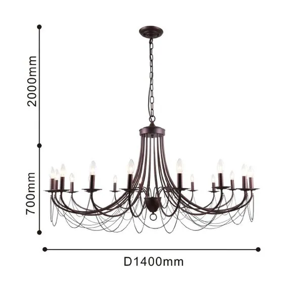 Артикул: 2590-18P; Бренд: F-Promo; Коллекция: Plini; Стиль: Ambient; Назначение: гостиная; спальня; кухня; детская; холл; кафе; ресторан; кабинет; столовая; студия; Тип светильника: подвесная люстра; Тип крепления: планка; Степень защиты: IP20; Площадь освещения, м2: 36; Напряжение питания, V: 220; Натяжные потолки: Да; Тип ламп: 18*E14*40W, excluded; Общая мощность, W: 720; Материал: Металл; Материал каркаса: металл, Металл; Материал плафона: металл, Металл; Цвет каркаса: кофейный, Кофейный; Цвет плафона: кофейный; Диммирование: нет; Наличие пульта: Нет; Гарантия, мес: 36; min высота: 700; max высота: 2700; Диаметр, мм: 1400; Высота потолочной чаши, мм: 35; Диаметр потолочной чаши, мм: 160; Высота плафона, мм: 700; Вес, кг: 7.6; Вес упаковки, кг: 9.9; Длина упаковки, см: 82; Ширина упаковки, см: 70; Высота упаковки, см: 16; Штрихкод: 4035726137422