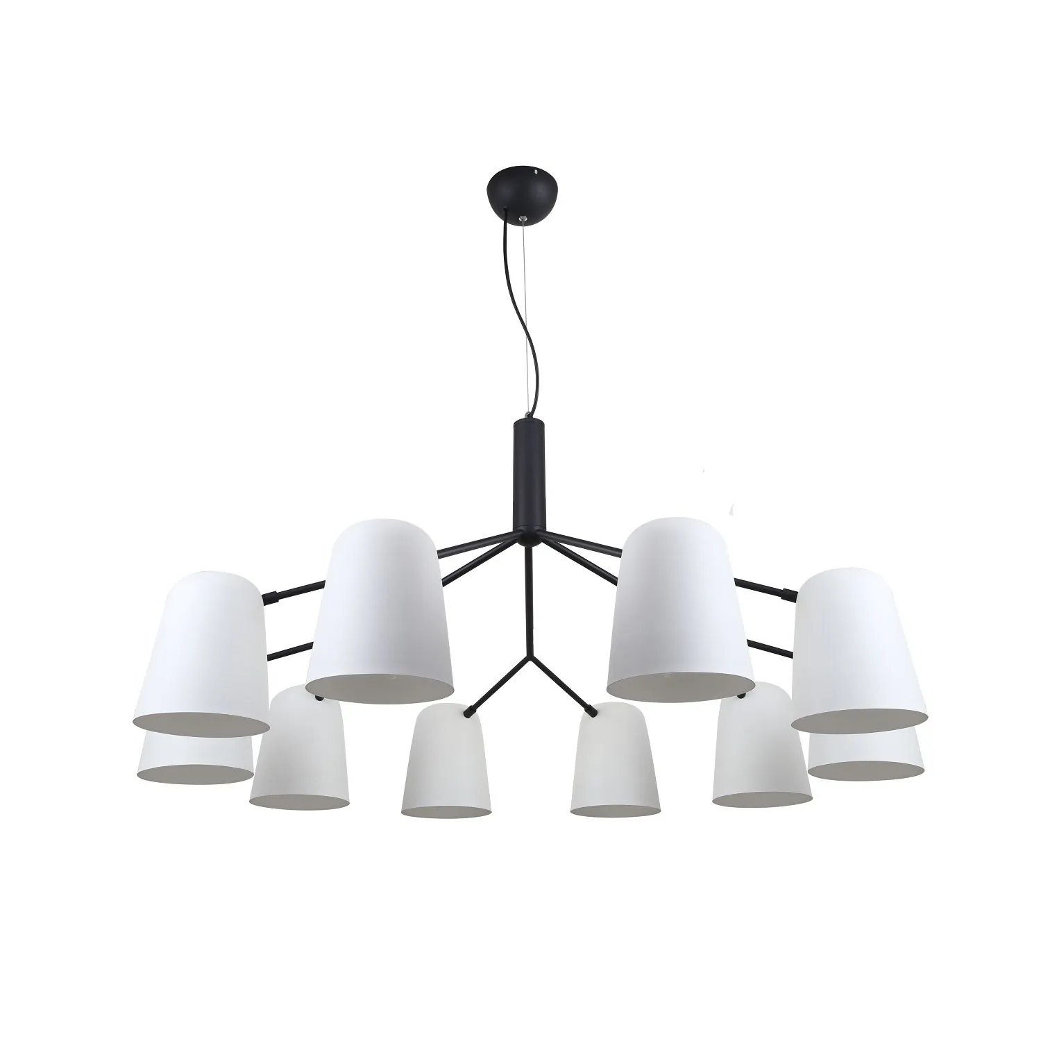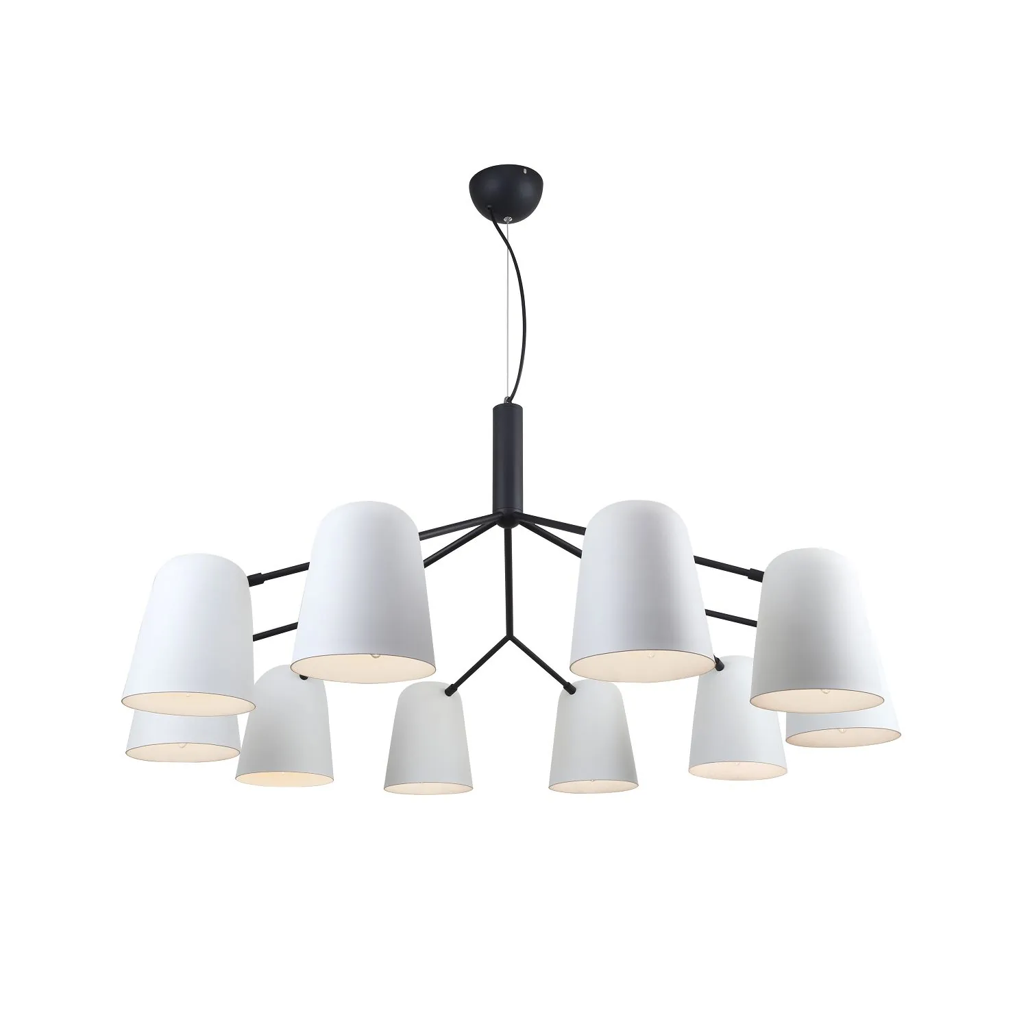 Артикул: 2762-10P; Бренд: F-Promo; Коллекция: Trick; Стиль: Modern; Назначение: гостиная; спальня; кухня; детская; холл; кафе; ресторан; кабинет; столовая; студия; Тип светильника: подвесная люстра; Тип крепления: планка; Степень защиты: IP20; Площадь освещения, м2: 20; Напряжение питания, V: 220; Натяжные потолки: Да; Тип ламп: 10*E14*40W, excluded; Общая мощность, W: 400; Материал: Металл; Материал каркаса: металл, Металл; Материал плафона: металл, Металл; Цвет каркаса: черный, Черный, Чёрный, чёрный; Цвет плафона: белый, Белый; Диммирование: нет; Наличие пульта: Нет; Гарантия, мес: 36; min высота: 610; max высота: 1560; Диаметр, мм: 1050; Высота плафона, мм: 180; Вес, кг: 5.3; Вес упаковки, кг: 7.1; Длина упаковки, см: 51; Ширина упаковки, см: 34.5; Высота упаковки, см: 40.5; Штрихкод: 4035726141894