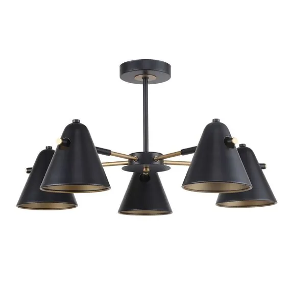 Артикул: 2844-5P; Бренд: F-Promo; Коллекция: Rigor; Стиль: Modern; Назначение: гостиная; спальня; кухня; детская; холл; кафе; ресторан; кабинет; столовая; студия; Тип светильника: потолочная люстра; Тип крепления: планка; Степень защиты: IP20; Площадь освещения, м2: 10; Напряжение питания, V: 220; Натяжные потолки: Да; Тип ламп: 5*E14*40W, excluded; Общая мощность, W: 200; Материал: Металл; Материал каркаса: металл, Металл; Материал плафона: металл, Металл; Цвет каркаса: черный, Черный, Чёрный, чёрный; Цвет плафона: черный, золотой; Диммирование: нет; Наличие пульта: Нет; Гарантия, мес: 36; min высота: 330; max высота: 330; Диаметр, мм: 610; Высота потолочной чаши, мм: 25; Диаметр потолочной чаши, мм: 120; Высота плафона, мм: 135; Вес, кг: 1.9; Вес упаковки, кг: 2.5; Длина упаковки, см: 28; Ширина упаковки, см: 26; Высота упаковки, см: 17; Штрихкод: 4035726141948