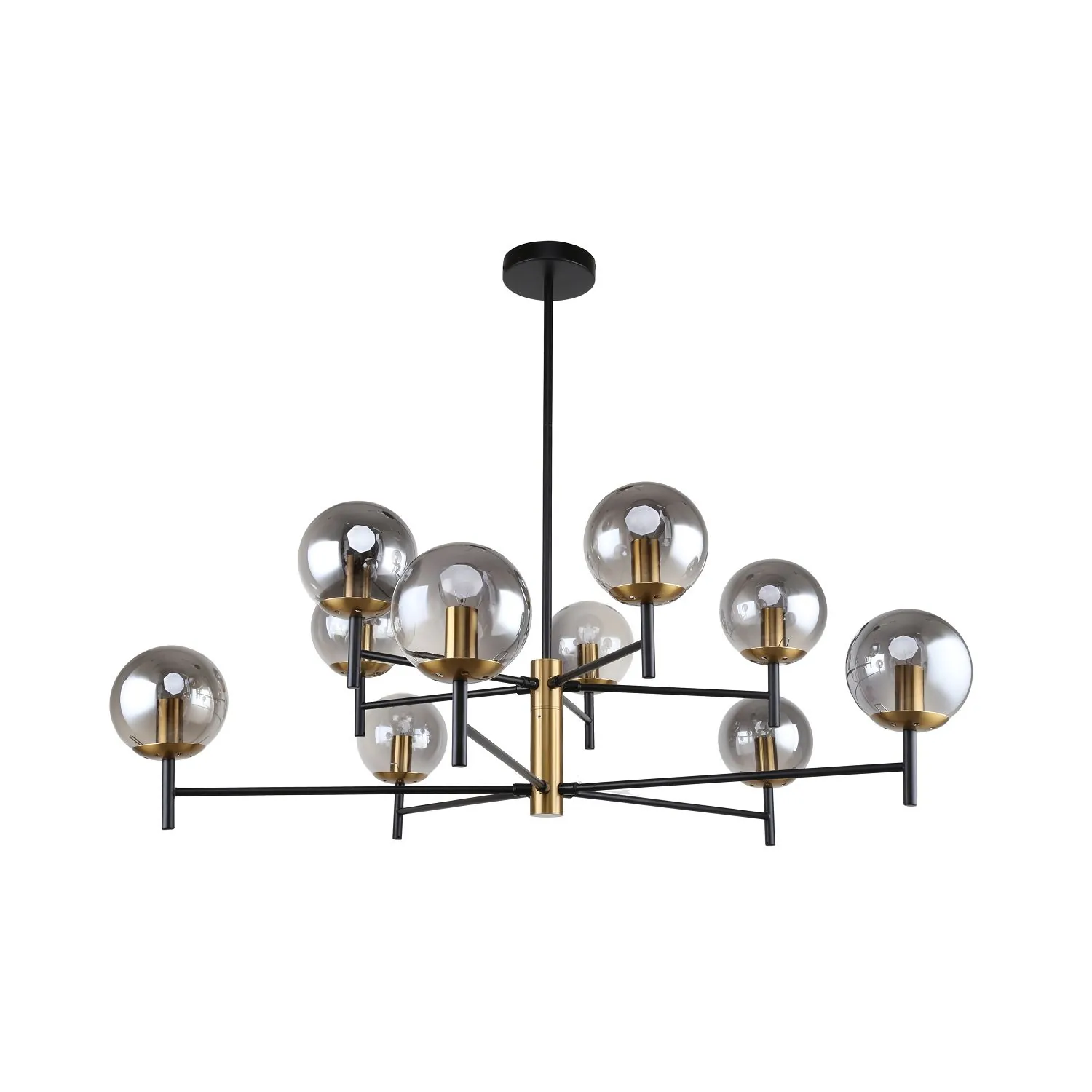 Артикул: 3088-10P; Бренд: F-Promo; Коллекция: Sheeny; Стиль: Modern; Назначение: гостиная; спальня; кухня; детская; холл; кафе; ресторан; кабинет; столовая; студия; Тип светильника: потолочная люстра; Тип крепления: планка; Степень защиты: IP20; Площадь освещения, м2: 20; Напряжение питания, V: 220; Натяжные потолки: Да; Тип ламп: 10*E14*40W, excluded; Общая мощность, W: 400; Материал: Металл, Стекло; Материал каркаса: металл, Металл; Материал плафона: стекло, Стекло; Цвет каркаса: черный, Черный, Чёрный, чёрный; Цвет плафона: дымчатосерый; Диммирование: нет; Наличие пульта: Нет; Гарантия, мес: 36; min высота: 410; max высота: 710; Диаметр, мм: 980; Высота потолочной чаши, мм: 25; Диаметр потолочной чаши, мм: 120; Высота плафона, мм: 330; Вес, кг: 3.2; Вес упаковки, кг: 3.8; Длина упаковки, см: 78.5; Ширина упаковки, см: 35.5; Высота упаковки, см: 26.5; Штрихкод: 4035726149067