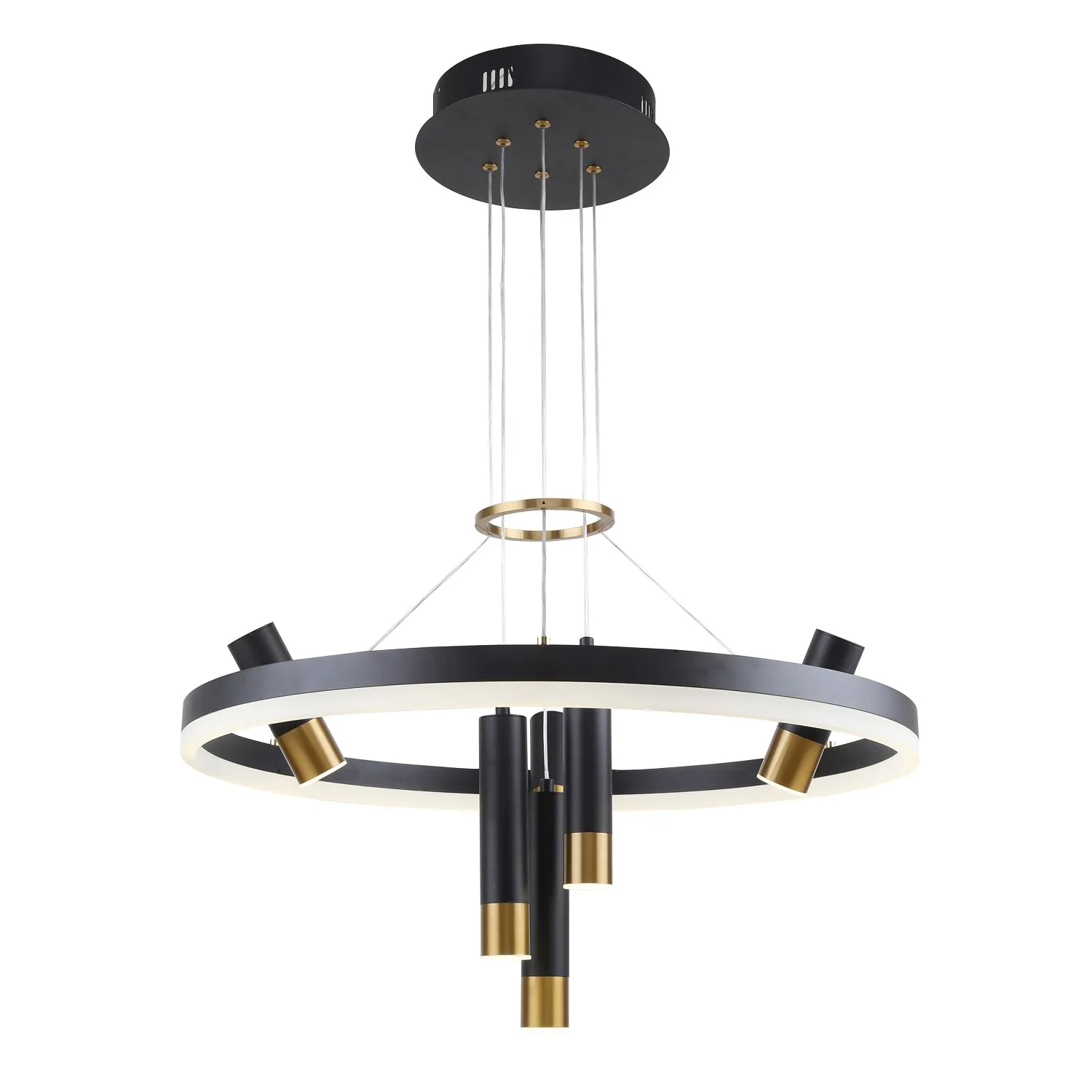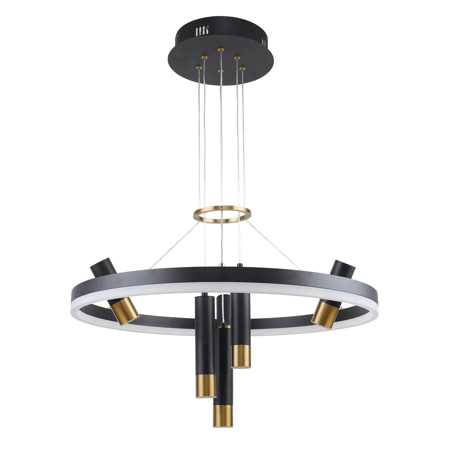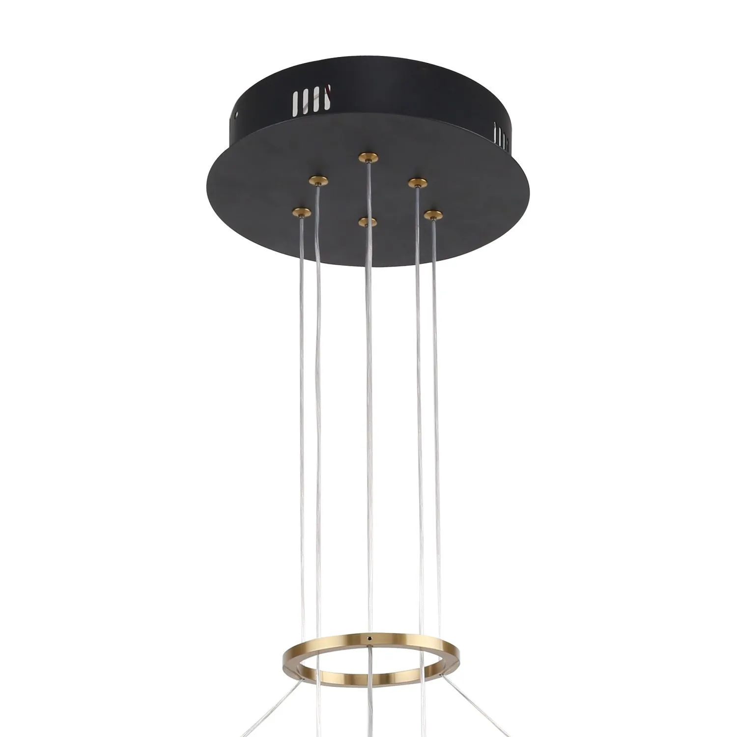 Артикул: 3097-7P; Бренд: F-Promo; Коллекция: Daur; Стиль: Modern; Назначение: гостиная; спальня; кухня; детская; холл; кафе; ресторан; кабинет; столовая; студия; Тип светильника: подвесная люстра; Тип крепления: планка; Степень защиты: IP20; Площадь освещения, м2: 21; Напряжение питания, V: 220; Угол поворота, град: 180; Натяжные потолки: Да; Тип ламп: LED*35W + 6*LED*3W, 3640LM, 4000K, included; Общая мощность, W: 371; Max цветовая температура, К: 4000; Материал: металл, акрил; Материал каркаса: металл, Металл; Материал плафона: Металл, акрил, металл, акрил; Цвет каркаса: черный, Черный, Чёрный, чёрный; Цвет плафона: латунь, белый; Диммирование: нет; Наличие пульта: Нет; Гарантия, мес: 36; min высота: 600; max высота: 1000; Диаметр, мм: 600; Высота потолочной чаши, мм: 50; Диаметр потолочной чаши, мм: 230; Высота плафона, мм: 190; Вес, кг: 2.8; Вес упаковки, кг: 4.5; Длина упаковки, см: 66.5; Ширина упаковки, см: 66.5; Высота упаковки, см: 14.5; Штрихкод: 4035726149296