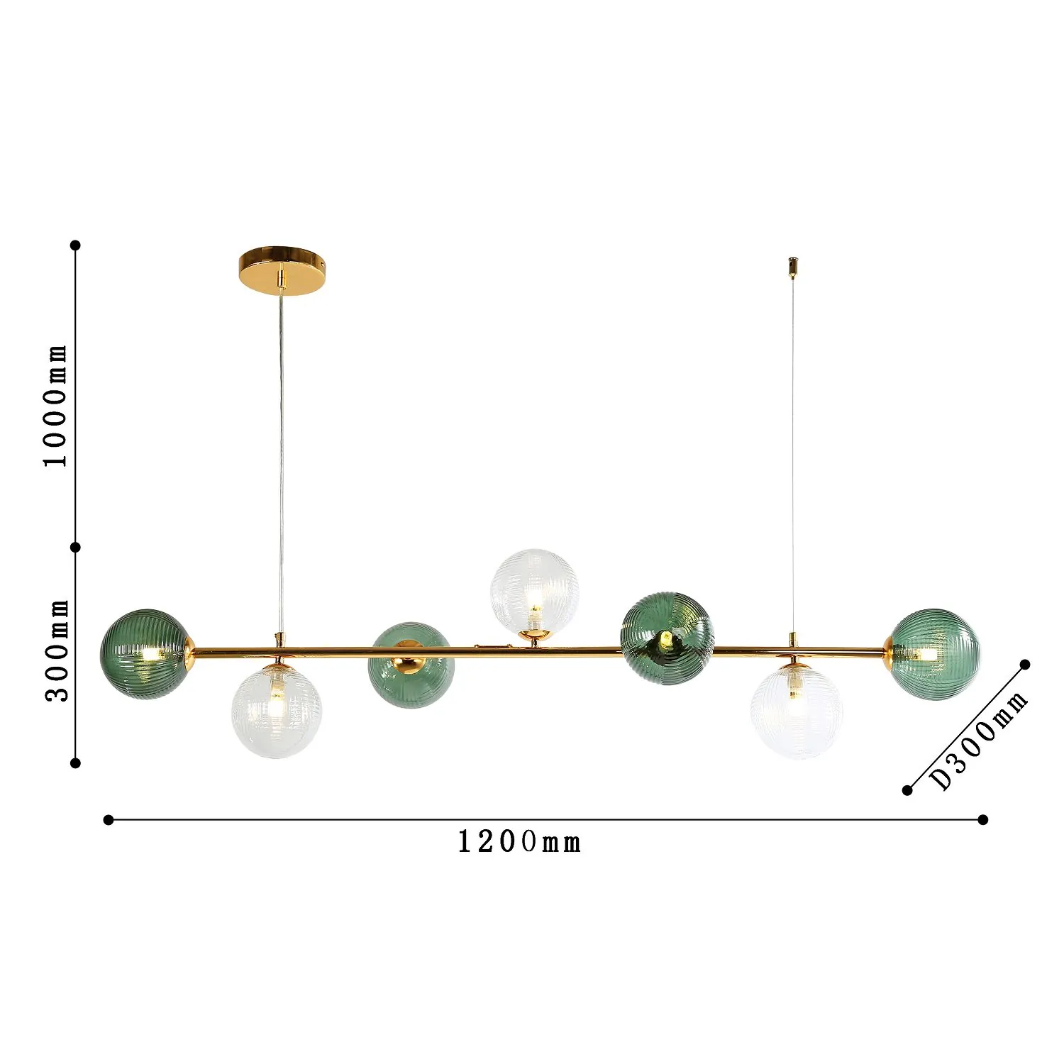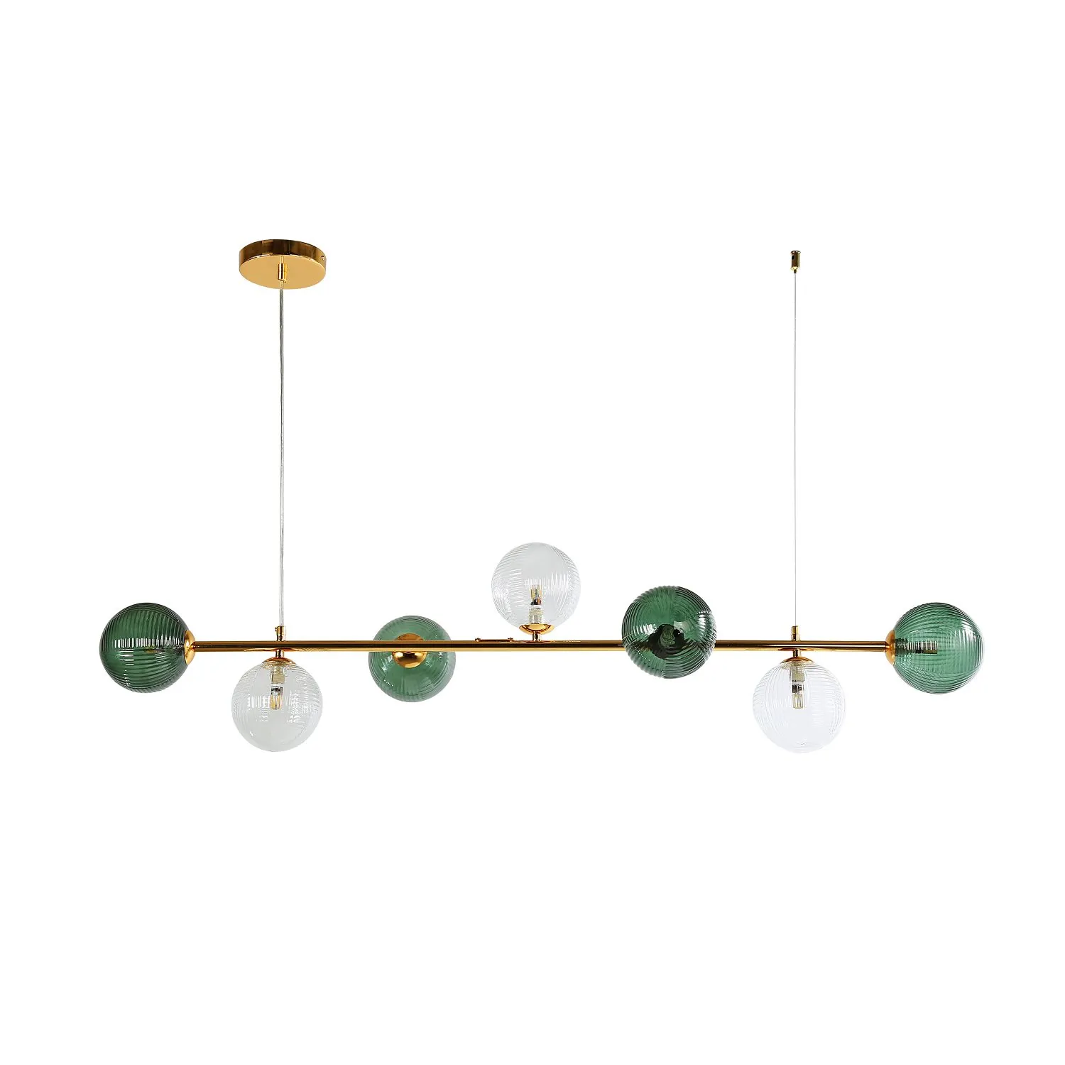 Артикул: 4035-7P; Бренд: F-Promo; Коллекция: Infilato; Стиль: Modern; Назначение: гостиная; спальня; кухня; детская; холл; кафе; ресторан; кабинет; столовая; студия; Тип светильника: подвесная люстра; Тип крепления: планка; Степень защиты: IP20; Площадь освещения, м2: 18; Напряжение питания, V: 220; Натяжные потолки: Да; Тип ламп: 7*G9LED*5W, excluded; Общая мощность, W: 35; Материал: Металл, Стекло; Материал каркаса: металл, Металл; Материал плафона: стекло, Стекло; Цвет каркаса: золотой, Золотой; Цвет плафона: зеленый, прозрачный; Диммирование: нет; Наличие пульта: Нет; Гарантия, мес: 36; Длина, мм: 1200; Ширина, мм: 300; min высота: 300; max высота: 1300; Высота потолочной чаши, мм: 25; Диаметр потолочной чаши, мм: 130; Высота плафона, мм: 300; Вес, кг: 2.2; Вес упаковки, кг: 2.8; Длина упаковки, см: 105; Ширина упаковки, см: 16; Высота упаковки, см: 24; Штрихкод: 4035726149999