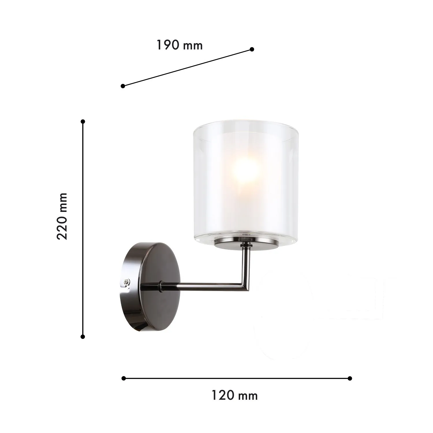 Артикул: 4087-1W; Бренд: F-Promo; Коллекция: Proper; Стиль: Modern; Назначение: гостиная; спальня; кухня; детская; холл; кафе; ресторан; кабинет; столовая; студия; Тип светильника: Бра; Тип крепления: планка; Степень защиты: IP20; Площадь освещения, м2: 2; Напряжение питания, V: 220; Натяжные потолки: Нет; Тип ламп: 1*E14*40W, excluded; Общая мощность, W: 40; Материал: Металл, Стекло; Материал каркаса: металл, Металл; Материал плафона: стекло, Стекло; Цвет каркаса: черный, Черный, Чёрный, чёрный; Цвет плафона: матовый белый, прозрачный; Диммирование: нет; Наличие пульта: Нет; Гарантия, мес: 36; Ширина, мм: 120; min высота: 220; max высота: 220; Глубина, мм: 190; Высота плафона, мм: 120; Вес, кг: 0.5; Вес упаковки, кг: 0.6; Длина упаковки, см: 17.5; Ширина упаковки, см: 17.5; Высота упаковки, см: 25; Штрихкод: 4035726150858