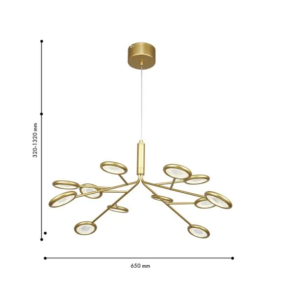 Артикул: 4253-12P; Бренд: F-Promo; Коллекция: Mugs; Стиль: Modern; Назначение: гостиная; спальня; кухня; детская; холл; кафе; ресторан; кабинет; столовая; студия; Тип светильника: подвесная/потолочная люстра; Тип крепления: планка; Степень защиты: IP20; Площадь освещения, м2: 10; Напряжение питания, V: 220; Натяжные потолки: Да; Тип ламп: 12*LED*3W, 3060LM, 4000K, included; Общая мощность, W: 36; Max цветовая температура, К: 4000; Материал: металл, акрил; Материал каркаса: металл, Металл; Материал плафона: металл, Металл; Цвет каркаса: золотой, Золотой; Цвет плафона: Золотой, золотой; Диммирование: нет; Наличие пульта: Нет; Гарантия, мес: 36; min высота: 320; max высота: 1320; Диаметр, мм: 650; Высота потолочной чаши, мм: 50; Диаметр потолочной чаши, мм: 100; Вес, кг: 1.4; Вес упаковки, кг: 2.2; Длина упаковки, см: 43; Ширина упаковки, см: 32; Высота упаковки, см: 19.5; Штрихкод: 4035726154405