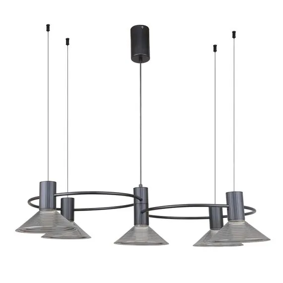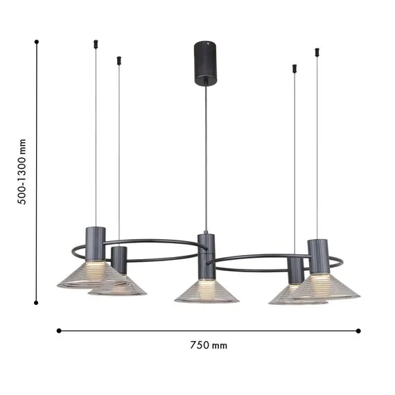 Артикул: 4622-5P; Бренд: F-Promo; Коллекция: Feris; Стиль: Loft, LOFT; Назначение: гостиная; спальня; кухня; детская; холл; кафе; ресторан; кабинет; столовая; студия; Тип светильника: подвесная люстра; Тип крепления: планка; Степень защиты: IP20; Площадь освещения, м2: 11.162790697674; Напряжение питания, V: 220; Натяжные потолки: Да; Тип ламп: 5*LED*6W, 2400LM, 3000K, included; Max цветовая температура, К: 3000; Индекс цветопередачи: >90; Материал: Металл, Стекло; Материал каркаса: металл, Металл; Материал плафона: стекло, Стекло; Цвет каркаса: черный, Черный, Чёрный, чёрный; Цвет плафона: черный, Черный, чёрный, Чёрный; Диммирование: нет; Наличие пульта: Нет; Гарантия, мес: 36; Длина, мм: 750; Ширина, мм: 500; min высота: 500; max высота: 1300; Высота потолочной чаши, мм: 120; Диаметр потолочной чаши, мм: 70; Высота плафона, мм: 60; Вес, кг: 4.2; Вес упаковки, кг: 5.5; Длина упаковки, см: 76.5; Ширина упаковки, см: 39.5; Высота упаковки, см: 19; Штрихкод: 4035726161113