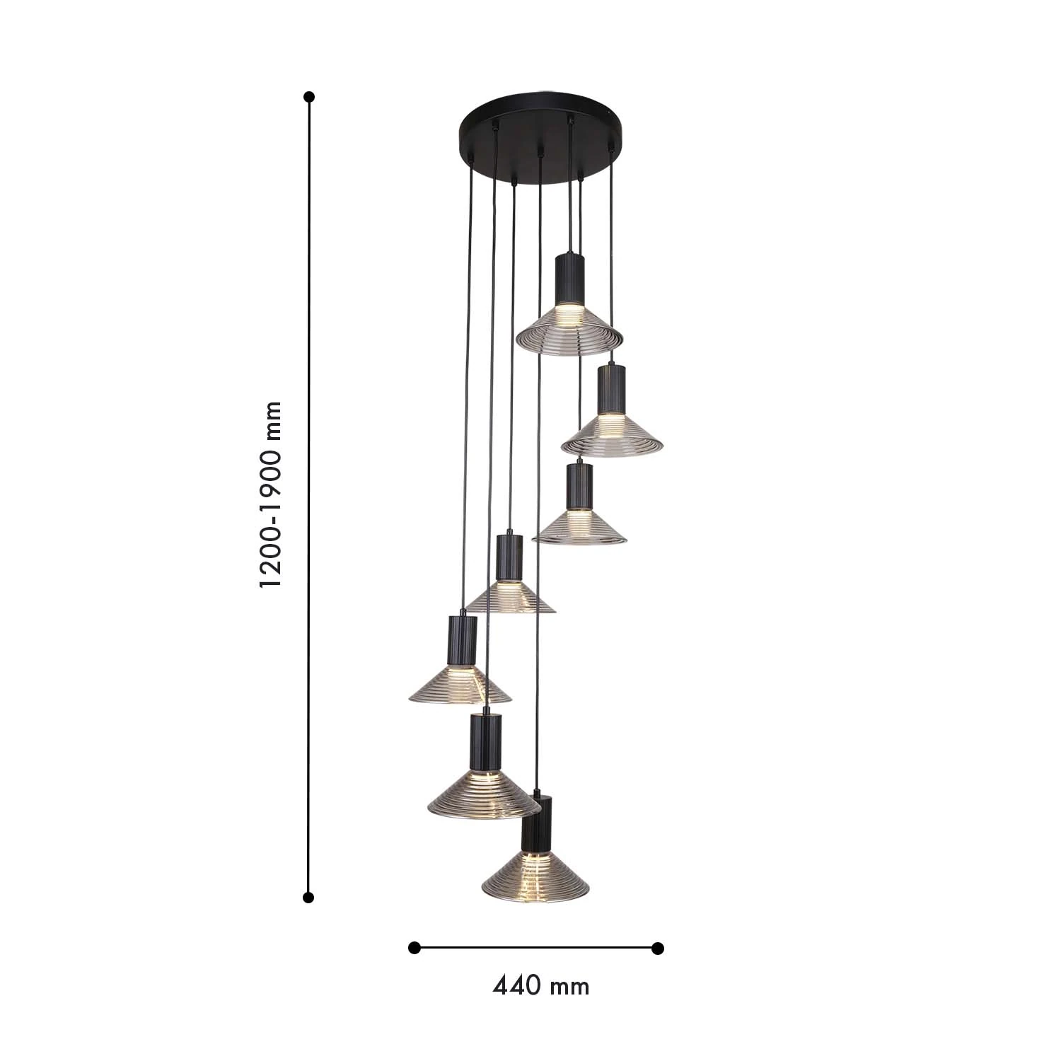 Артикул: 4622-7P; Бренд: F-Promo; Коллекция: Feris; Стиль: Loft, LOFT; Назначение: гостиная; спальня; кухня; детская; холл; кафе; ресторан; кабинет; столовая; студия; Тип светильника: подвесная люстра; Тип крепления: планка; Степень защиты: IP20; Площадь освещения, м2: 15.627906976744; Напряжение питания, V: 220; Натяжные потолки: Да; Тип ламп: 7*LED*6W, 3360LM, 3000K, included; Max цветовая температура, К: 3000; Индекс цветопередачи: >90; Материал: Металл, Стекло; Материал каркаса: металл, Металл; Материал плафона: стекло, Стекло; Цвет каркаса: черный, Черный, Чёрный, чёрный; Цвет плафона: черный, Черный, чёрный, Чёрный; Диммирование: нет; Наличие пульта: Нет; Гарантия, мес: 36; min высота: 1200; max высота: 1900; Диаметр, мм: 440; Высота потолочной чаши, мм: 300; Диаметр потолочной чаши, мм: 30; Высота плафона, мм: 60; Вес, кг: 6.7; Вес упаковки, кг: 7.3; Длина упаковки, см: 31.5; Ширина упаковки, см: 31.5; Высота упаковки, см: 24; Штрихкод: 4035726161120