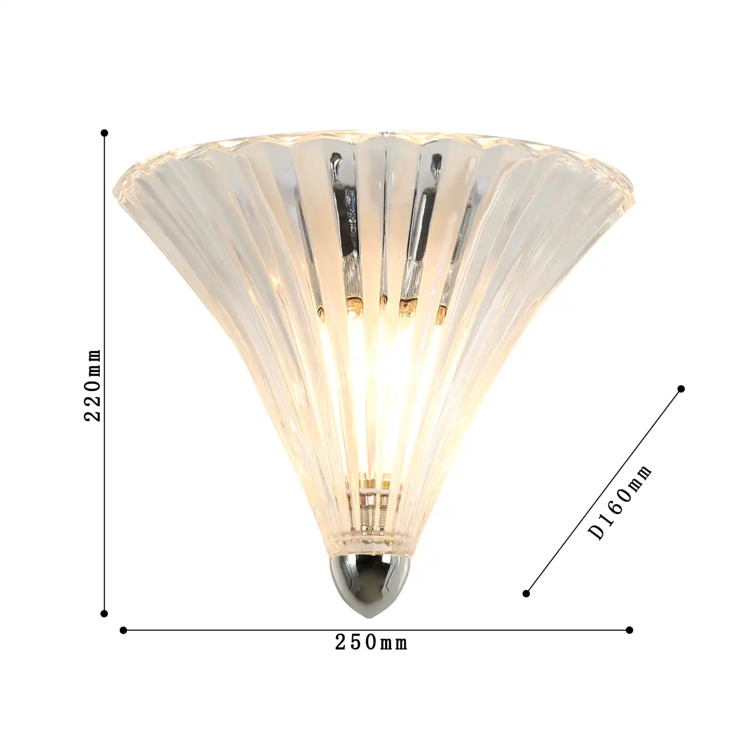 Артикул: 1696-1W; Бренд: Favourite; Коллекция: Iris; Стиль: Classic; Назначение: гостиная; спальня; кухня; детская; холл; кафе; ресторан; кабинет; столовая; студия; Тип светильника: Бра; Тип крепления: планка; Степень защиты: IP20; Площадь освещения, м2: 2; Напряжение питания, V: 220; Натяжные потолки: Нет; Тип ламп: 1*E14*40W, excluded; Общая мощность, W: 40; Материал: Металл, Стекло; Материал каркаса: металл, Металл; Материал плафона: стекло, Стекло; Цвет каркаса: хром, Хром; Цвет плафона: прозрачный, Прозрачный; Диммирование: нет; Наличие пульта: Нет; Гарантия, мес: 36; Ширина, мм: 250; min высота: 220; max высота: 220; Глубина, мм: 160; Высота плафона, мм: 220; Вес, кг: 1.6; Вес упаковки, кг: 1.8; Длина упаковки, см: 30; Ширина упаковки, см: 25; Высота упаковки, см: 21; Штрихкод: 4035726119114