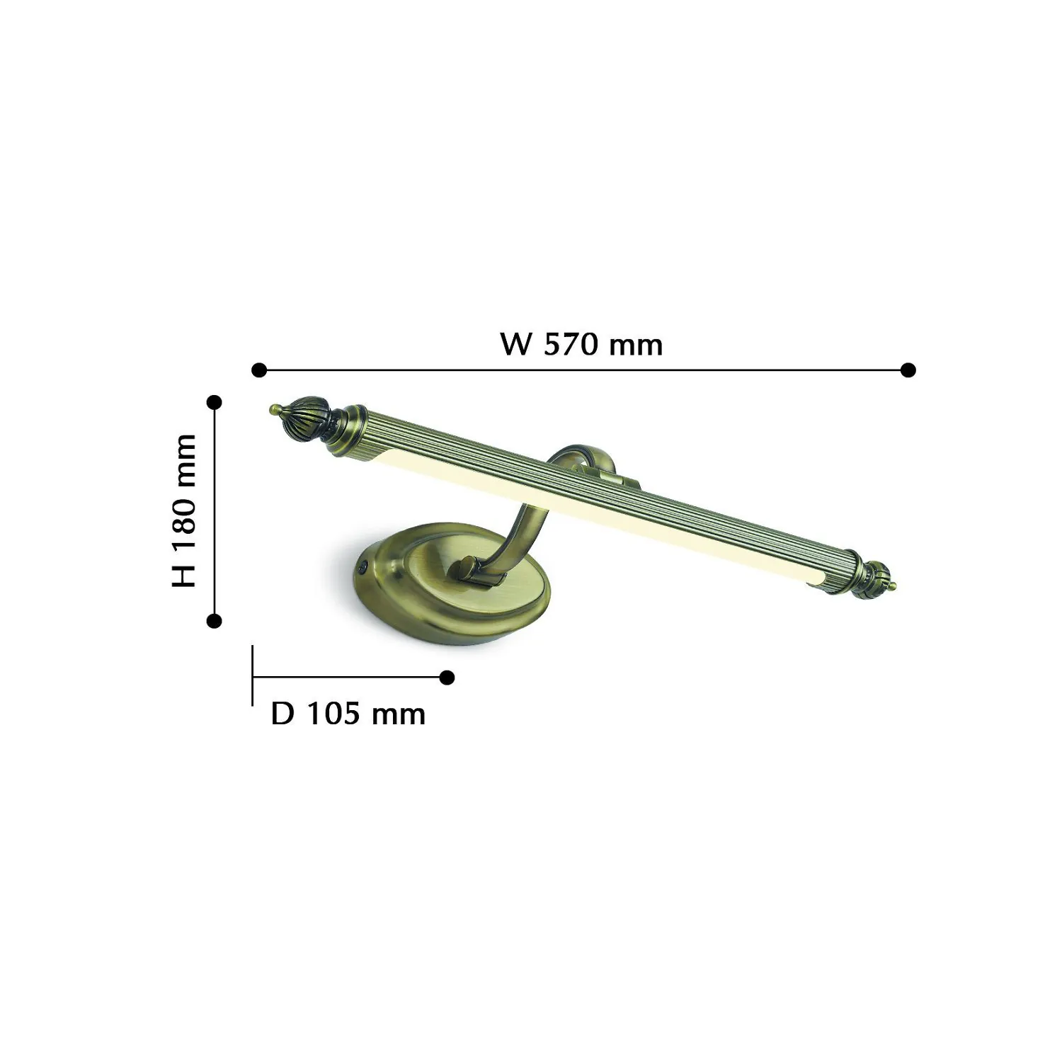 Артикул: 2435-1W; Бренд: Favourite; Коллекция: Artifex; Стиль: Mirror; Назначение: гостиная; спальня; кухня; детская; холл; кафе; ресторан; кабинет; столовая; студия; Тип светильника: Бра; Тип крепления: планка; Степень защиты: IP20; Площадь освещения, м2: 2; Напряжение питания, V: 220; Натяжные потолки: Нет; Тип ламп: 1*LED*8W, 640LM, 4000K, IP44, included; Общая мощность, W: 8; Max цветовая температура, К: 4000; Материал: металл, акрил; Материал каркаса: металл, Металл; Материал плафона: Металл, акрил, металл, акрил; Цвет каркаса: бронзовый, Бронзовый; Цвет плафона: бронзовый, белый; Диммирование: нет; Наличие пульта: Нет; Гарантия, мес: 36; Ширина, мм: 570; min высота: 180; max высота: 180; Глубина, мм: 200; Высота плафона, мм: 180; Вес, кг: 0.8; Вес упаковки, кг: 1.2; Длина упаковки, см: 57; Ширина упаковки, см: 22; Высота упаковки, см: 10; Штрихкод: 4035726133301