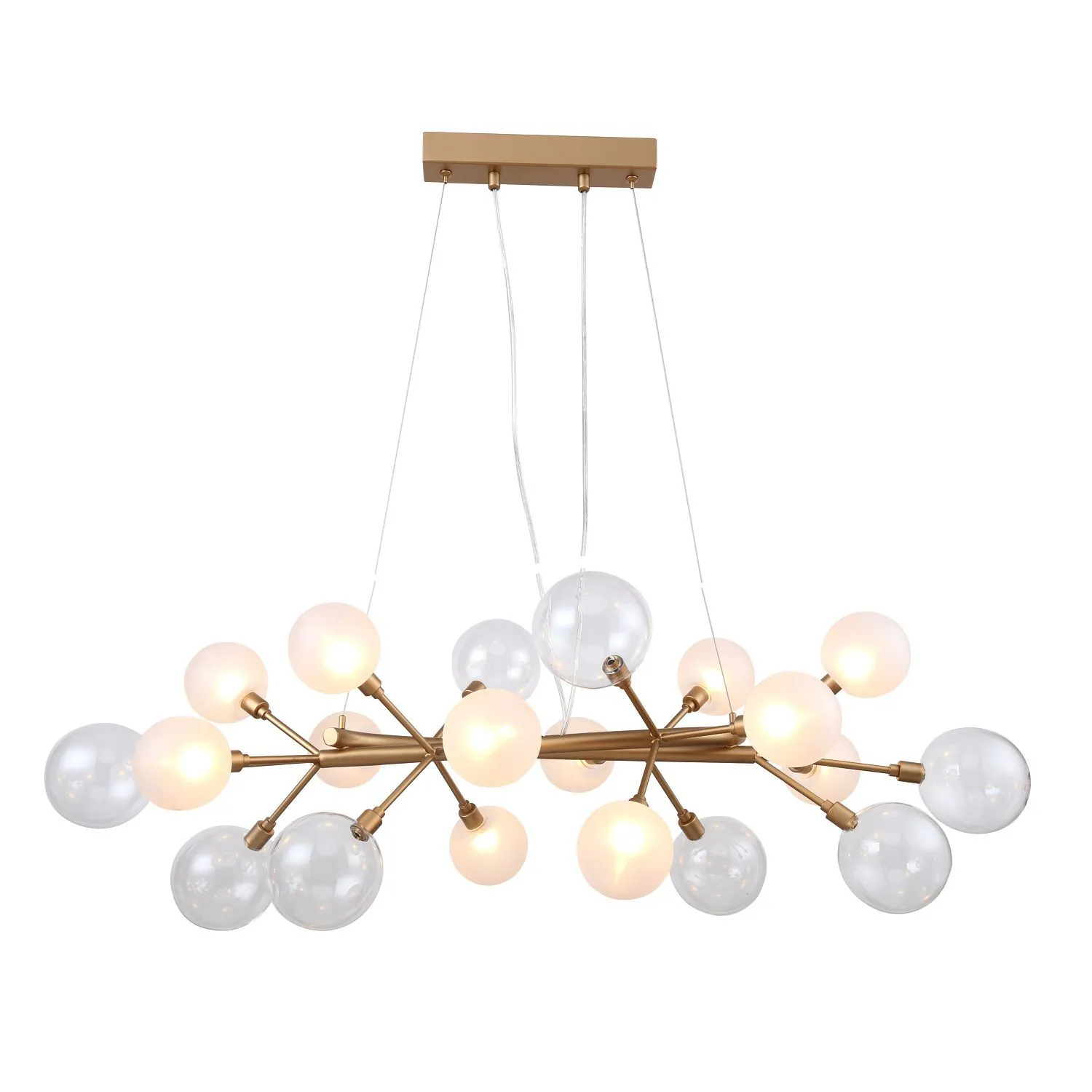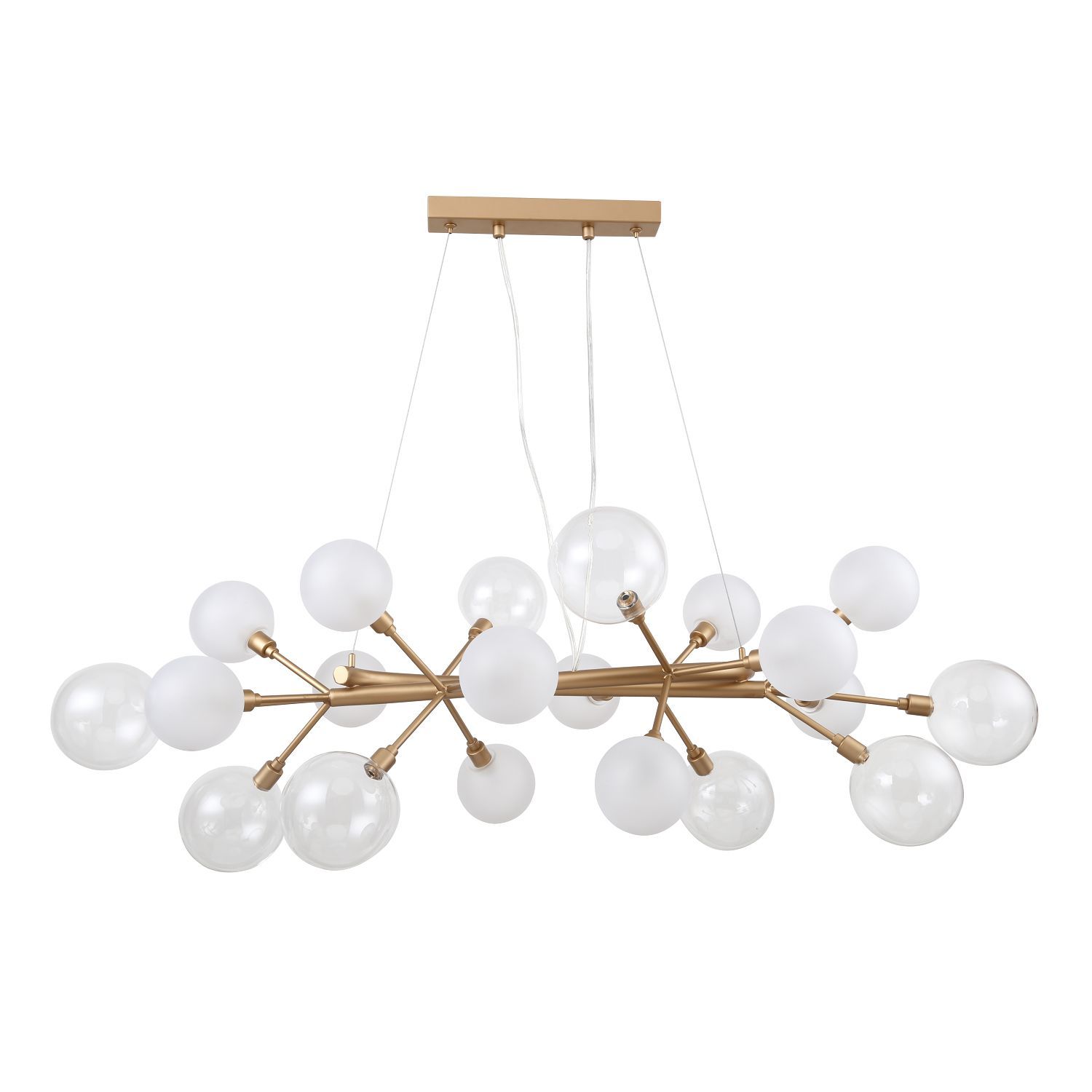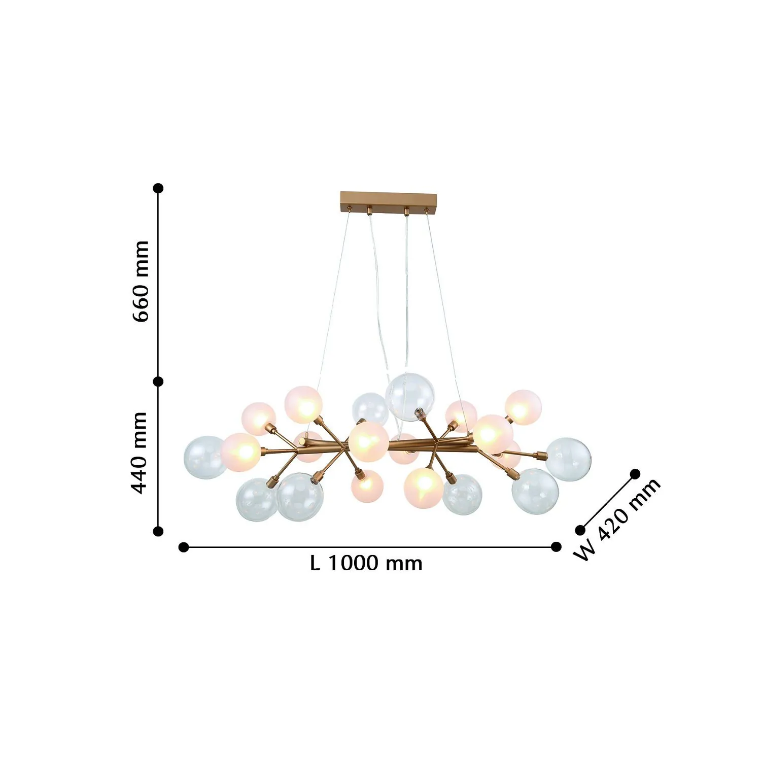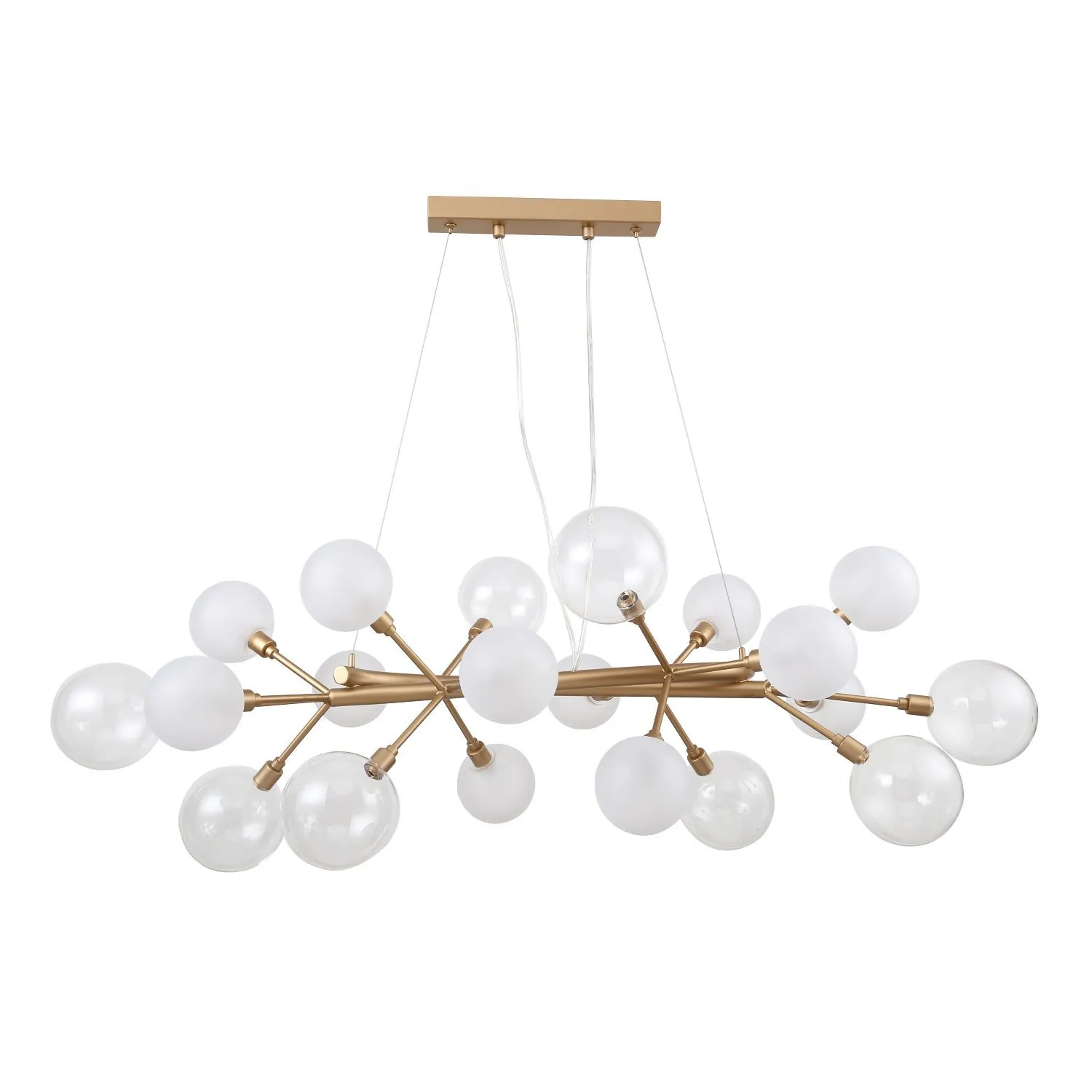 Артикул: 2515-12P; Бренд: Favourite; Коллекция: Babylon; Стиль: Modern; Назначение: гостиная; спальня; кухня; детская; холл; кафе; ресторан; кабинет; столовая; студия; Тип светильника: подвесная люстра; Тип крепления: планка; Степень защиты: IP20; Площадь освещения, м2: 32; Напряжение питания, V: 220; Натяжные потолки: Да; Тип ламп: 12*G9*40W, excluded; Общая мощность, W: 480; Материал: Металл, Стекло; Материал каркаса: металл, Металл; Материал плафона: стекло, Стекло; Цвет каркаса: золотой, Золотой; Цвет плафона: белый, Белый; Диммирование: нет; Наличие пульта: Нет; Гарантия, мес: 36; Длина, мм: 1000; Ширина, мм: 420; min высота: 440; max высота: 1100; Высота плафона, мм: 440; Вес, кг: 3.8; Вес упаковки, кг: 5.8; Длина упаковки, см: 83; Ширина упаковки, см: 32; Высота упаковки, см: 32.5; Штрихкод: 4035726134551