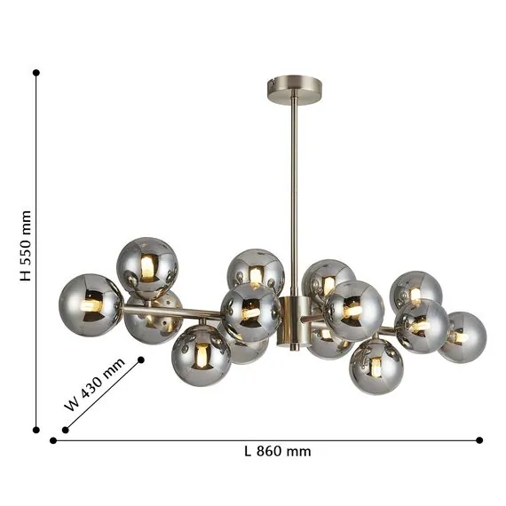 Артикул: 2650-14P; Бренд: Favourite; Коллекция: Varietas; Стиль: Modern; Назначение: гостиная; спальня; кухня; детская; холл; кафе; ресторан; кабинет; столовая; студия; Тип светильника: подвесная люстра; Тип крепления: планка; Степень защиты: IP20; Площадь освещения, м2: 26; Напряжение питания, V: 220; Натяжные потолки: Да; Тип ламп: 14*G9*28W, excluded; Материал: Металл, Стекло; Материал каркаса: металл, Металл; Материал плафона: стекло, Стекло; Цвет каркаса: никель, Никель; Цвет плафона: дымчатосерый; Диммирование: нет; Наличие пульта: Нет; Гарантия, мес: 36; Длина, мм: 860; Ширина, мм: 430; min высота: 550; max высота: 550; Вес, кг: 3.3; Вес упаковки, кг: 4.8; Длина упаковки, см: 80; Ширина упаковки, см: 51; Высота упаковки, см: 21; Штрихкод: 4035726139280