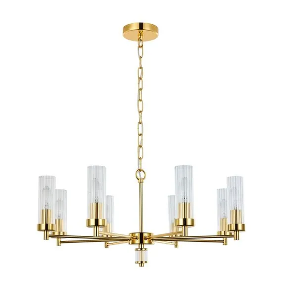 Артикул: 2673-8P; Бренд: Favourite; Коллекция: Aesthetic; Стиль: Classic; Назначение: гостиная; спальня; кухня; детская; холл; кафе; ресторан; кабинет; столовая; студия; Тип светильника: подвесная люстра; Тип крепления: планка; Степень защиты: IP20; Площадь освещения, м2: 16; Напряжение питания, V: 220; Натяжные потолки: Да; Тип ламп: 8*E14*40W, excluded; Материал: Металл, Стекло; Материал каркаса: металл, Металл; Материал плафона: стекло, Стекло; Цвет каркаса: золотой, Золотой; Цвет плафона: прозрачный, Прозрачный; Диммирование: нет; Наличие пульта: Нет; Гарантия, мес: 36; min высота: 310; max высота: 1310; Диаметр, мм: 660; Вес, кг: 4.8; Вес упаковки, кг: 5.5; Длина упаковки, см: 68; Ширина упаковки, см: 68; Высота упаковки, см: 15; Штрихкод: 4035726139921