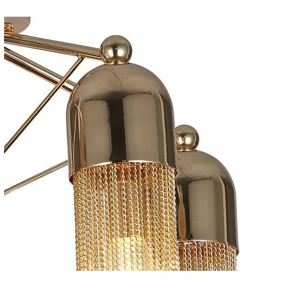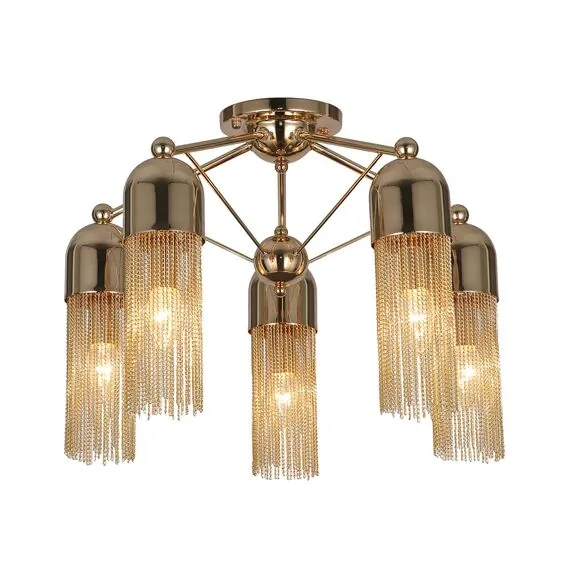 Артикул: 2739-5P; Бренд: Favourite; Коллекция: Zaria; Стиль: Modern; Назначение: гостиная; спальня; кухня; детская; холл; кафе; ресторан; кабинет; столовая; студия; Тип светильника: потолочная люстра; Тип крепления: планка; Степень защиты: IP20; Площадь освещения, м2: 15; Напряжение питания, V: 220; Натяжные потолки: Да; Тип ламп: 5*E14*60W, excluded; Общая мощность, W: 300; Материал: Металл; Материал каркаса: металл, Металл; Материал плафона: металл, Металл; Цвет каркаса: золотой, Золотой; Цвет плафона: Золотой, золотой; Диммирование: нет; Наличие пульта: Нет; Гарантия, мес: 36; min высота: 340; max высота: 340; Диаметр, мм: 540; Высота потолочной чаши, мм: 55; Диаметр потолочной чаши, мм: 135; Высота плафона, мм: 180; Вес, кг: 1.6; Вес упаковки, кг: 2.3; Длина упаковки, см: 34; Ширина упаковки, см: 26; Высота упаковки, см: 18; Штрихкод: 4035726141436
