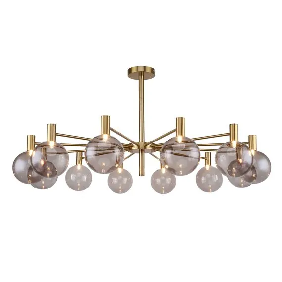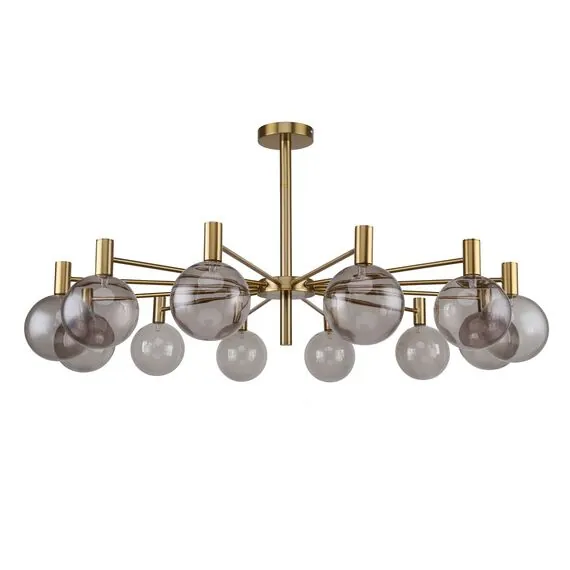 Артикул: 2765-12P; Бренд: Favourite; Коллекция: Eternity; Стиль: Modern; Назначение: гостиная; спальня; кухня; детская; холл; кафе; ресторан; кабинет; столовая; студия; Тип светильника: потолочная люстра; Тип крепления: планка; Степень защиты: IP20; Площадь освещения, м2: 20; Напряжение питания, V: 220; Натяжные потолки: Да; Тип ламп: 12*G9*25W, excluded; Общая мощность, W: 300; Материал: Металл, Стекло; Материал каркаса: металл, Металл; Материал плафона: стекло, Стекло; Цвет каркаса: латунь, Латунь; Цвет плафона: коньячный, Коньячный; Диммирование: нет; Наличие пульта: Нет; Гарантия, мес: 36; min высота: 500; max высота: 500; Диаметр, мм: 1040; Высота потолочной чаши, мм: 25; Диаметр потолочной чаши, мм: 120; Высота плафона, мм: 140; Вес, кг: 4.1; Вес упаковки, кг: 5.4; Длина упаковки, см: 48; Ширина упаковки, см: 35.5; Высота упаковки, см: 40.5; Штрихкод: 4035726142037